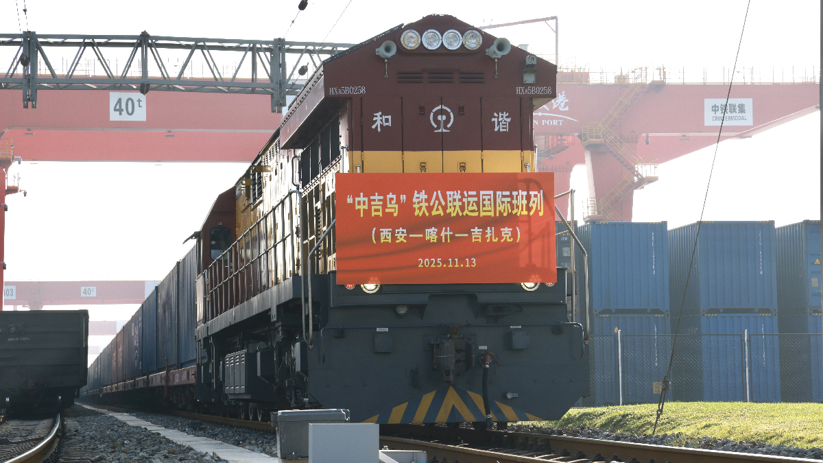 陕西首趟“中吉乌”铁公联运国际班列开行