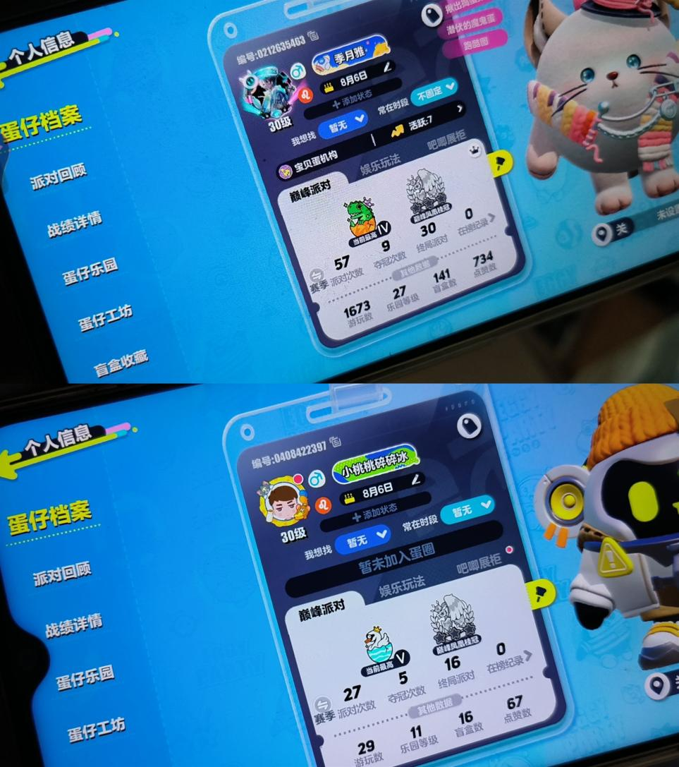 记者从陈女士提供的游戏界面中看到,两部手机蛋仔派对账号的蛋币数量分别为12960枚、417940枚,开盲盒数共计157次。