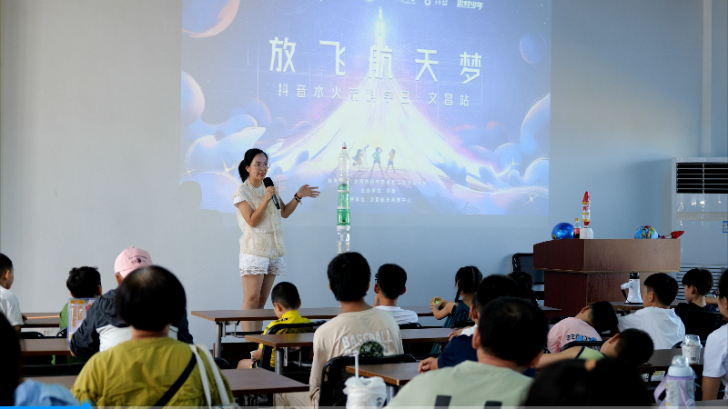 今年暑假,抖音发起水火箭科学日科普活动,面向全国征集水火箭视频,并在杭州、贵州、文昌等地开展水火箭体验课,通过线上线下相结合的方式,鼓励更多人参与科学制作,接力航天和科学知识传播。