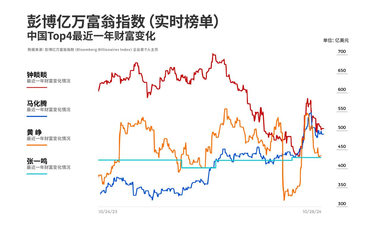 但随后,拼多多股价也遭遇一轮大幅下挫。9月12日,福布斯报道称,当日的福布斯实时富豪榜上,张一鸣以456亿美元(约合3246亿元人民币)的财富,超过了钟睒睒的433亿美元(约合3083亿元人民币)。9月16日,彭博社报道称,彭博亿万富翁指数又一次发生位置的变化,腾讯创始人马化腾以439亿美元(约合3099.6亿元人民币)的财富,超越了钟睒睒。