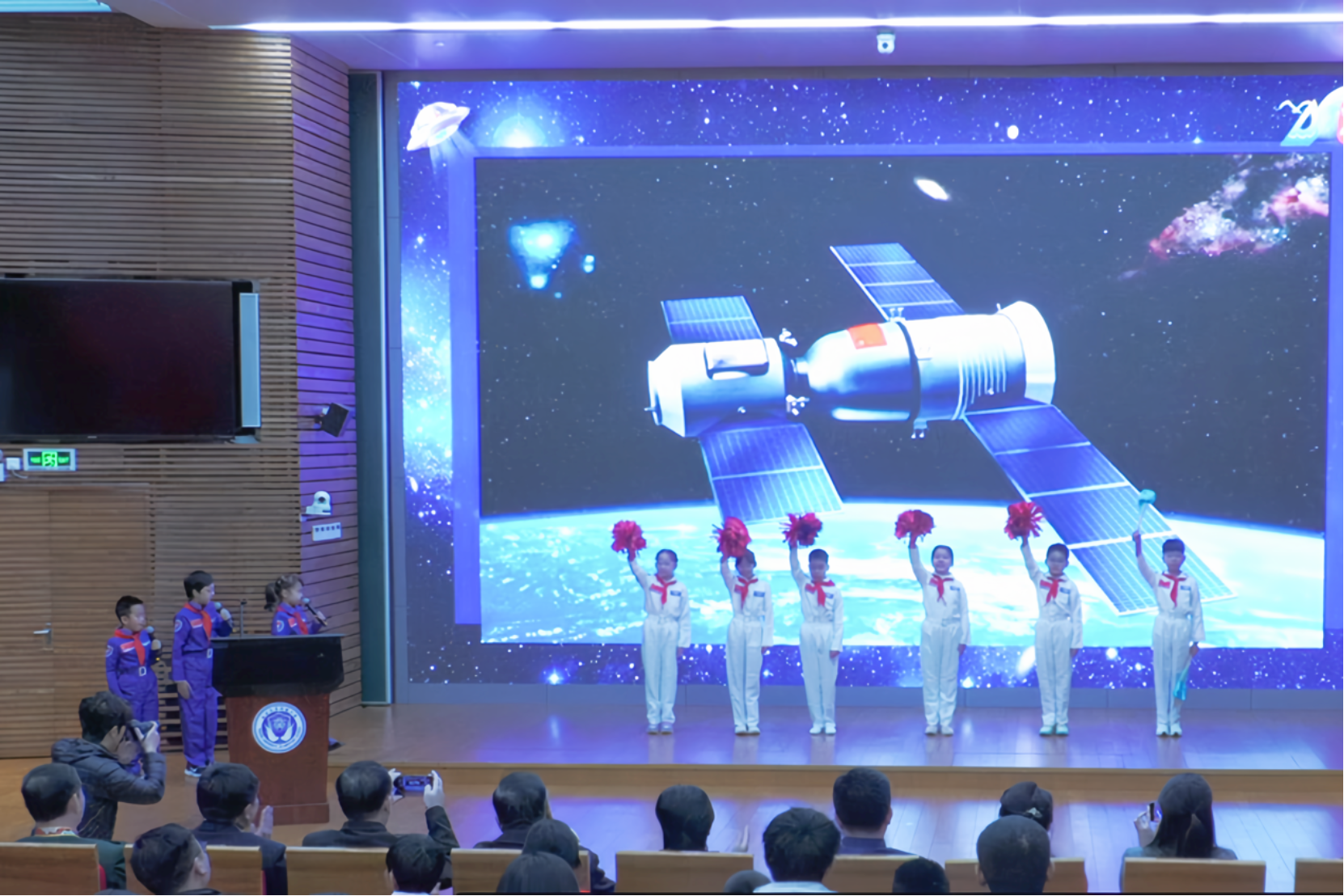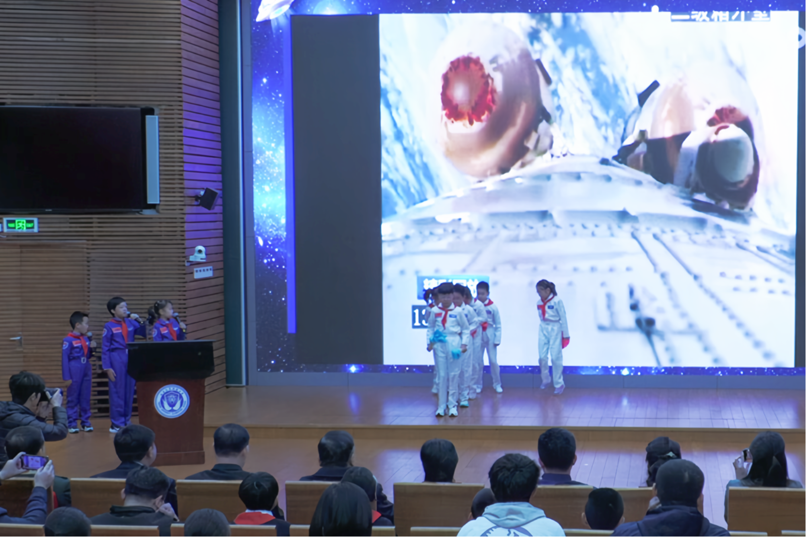 在活动现场,三位小小领航员的精彩回顾宛如一把神奇的钥匙,再次开启了通往航天魅力世界的大门。他们用稚嫩却充满激情的声音,讲述着那些惊心动魄的航天故事,带领大家重温了每一次火箭发射时的震撼瞬间,每一位航天员在太空中的英勇身姿,以及每一项航天技术突破背后的艰辛与荣耀。台下的同学们全神贯注地聆听着,眼中闪烁着好奇与向往的光芒,仿佛被带入了那广袤无垠的宇宙空间,与星辰为伴,与日月同辉。
