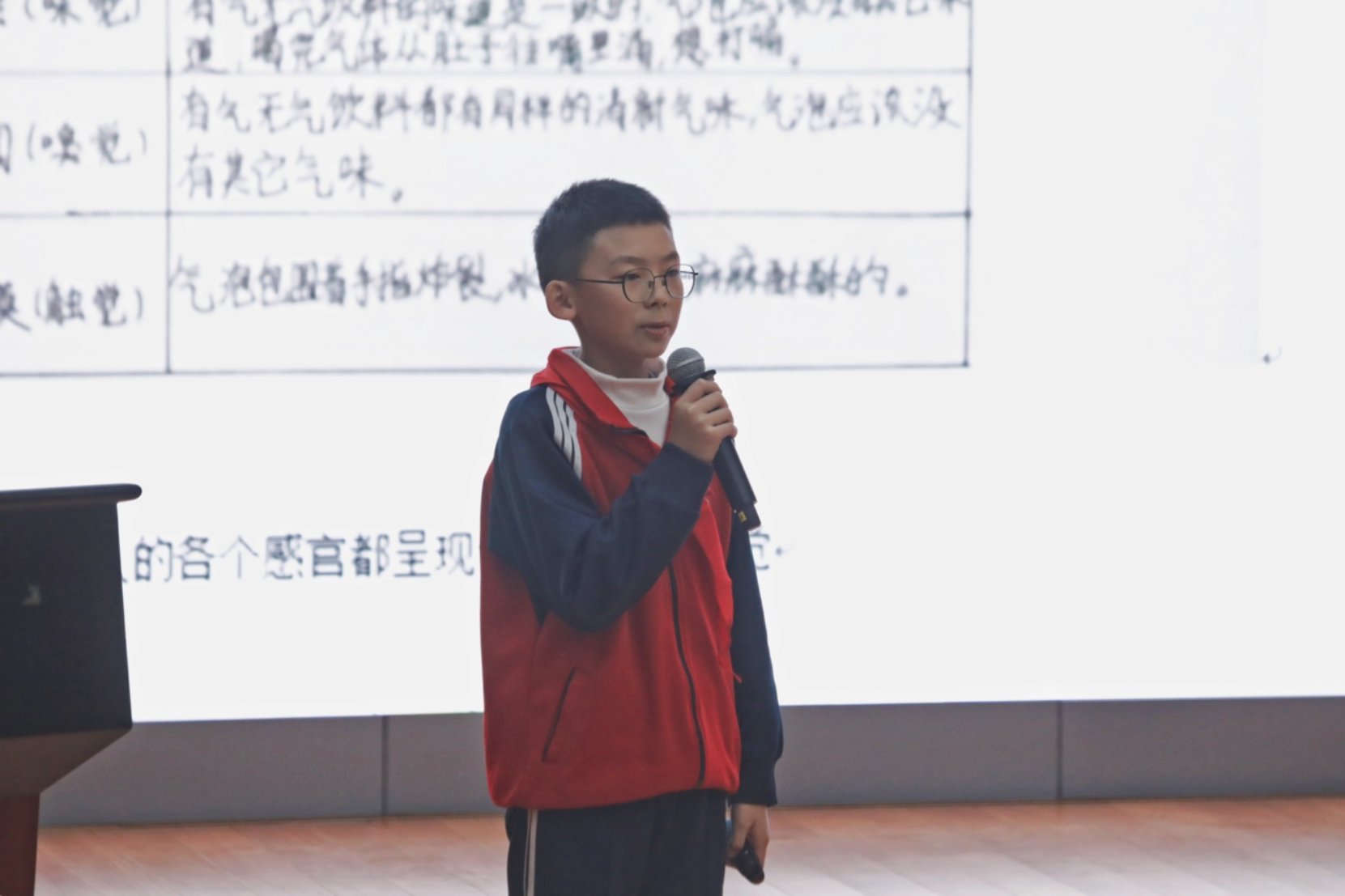 与现场同学交流碳酸饮料的饮用体验