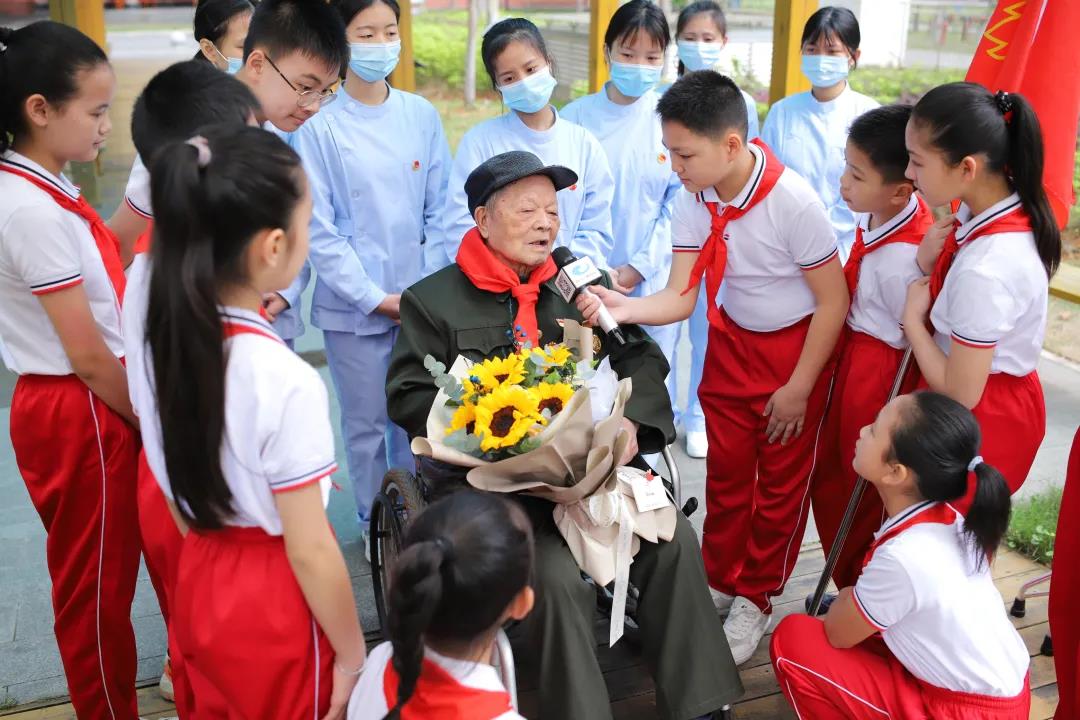 柳州市燎原路小学的队员们寻访毛泽东的警卫员蓝保华