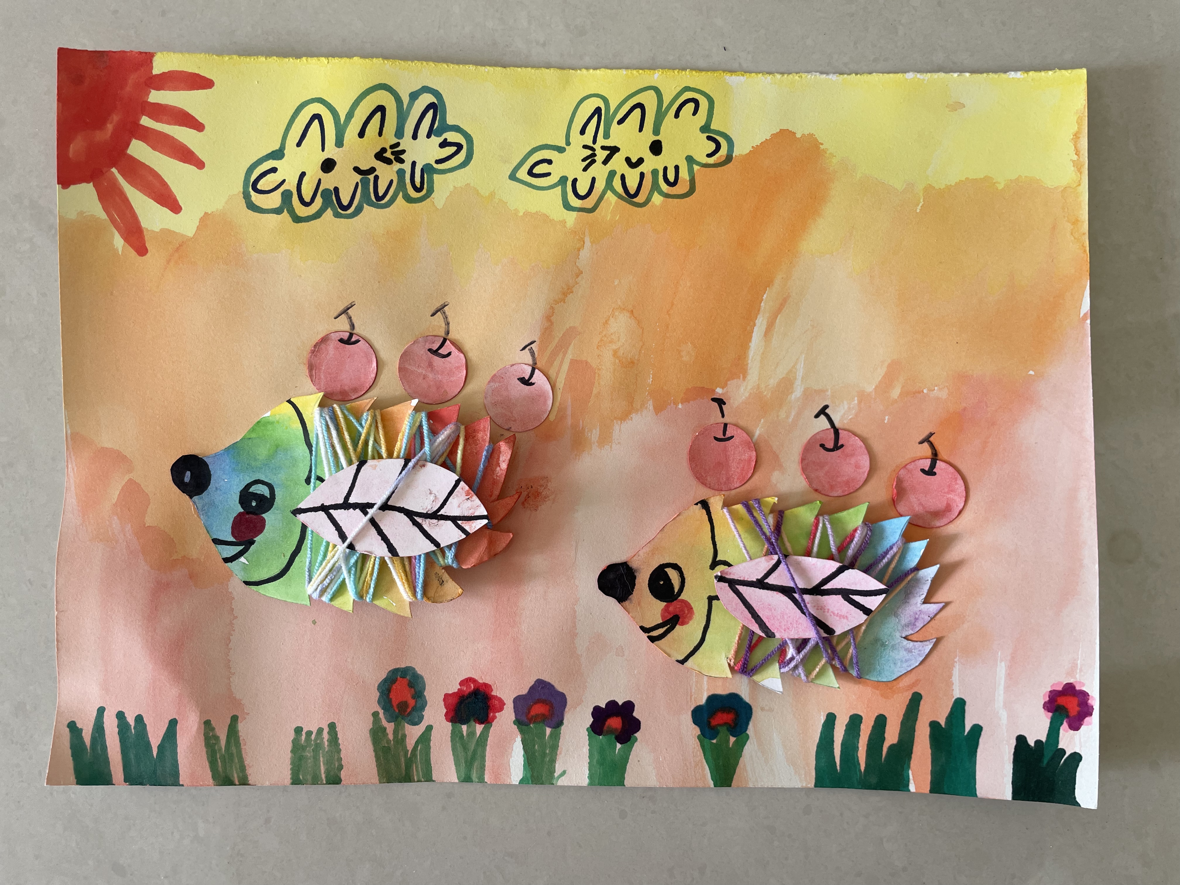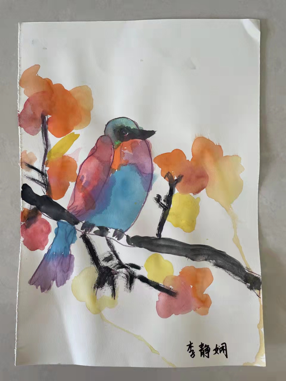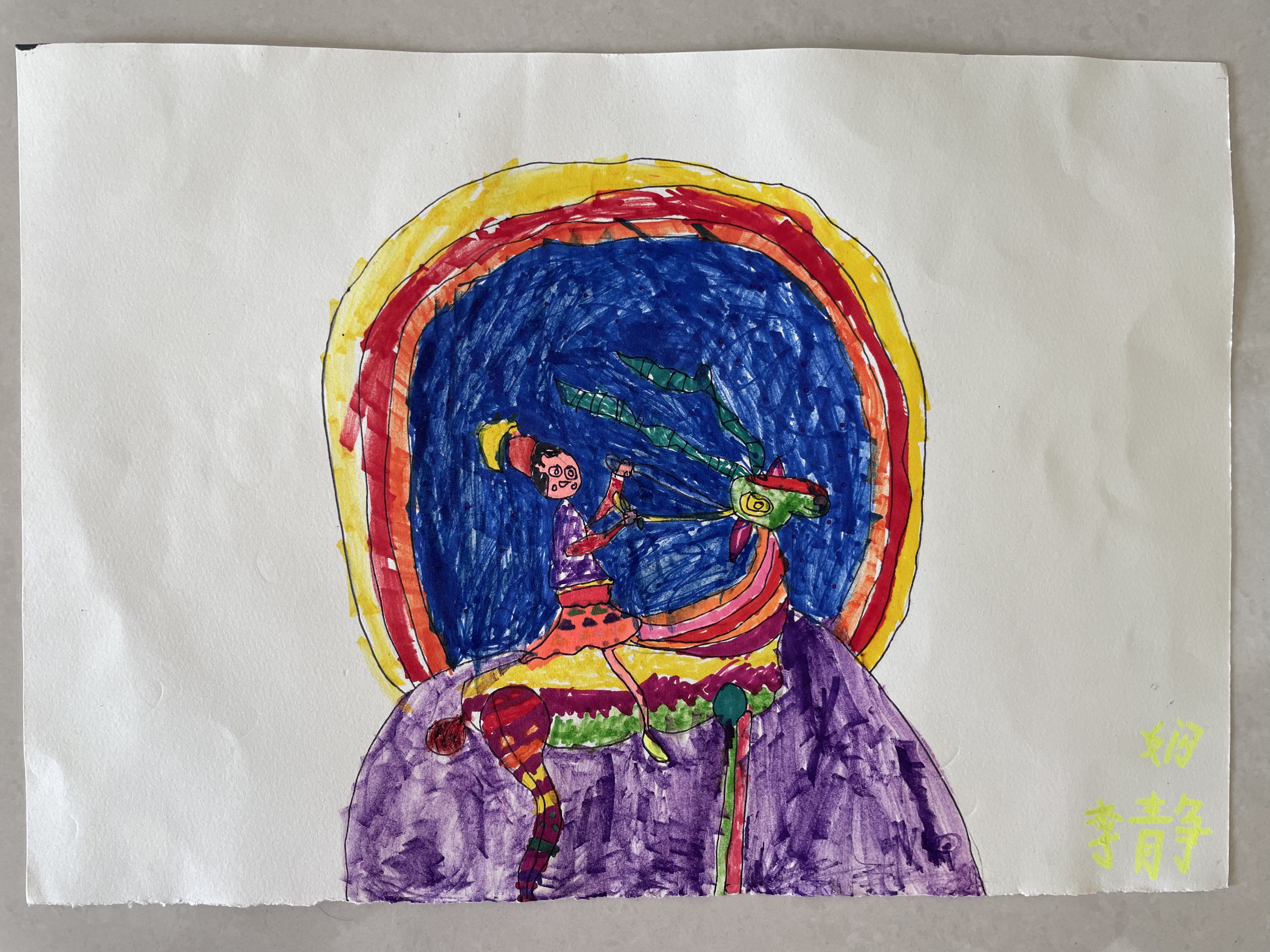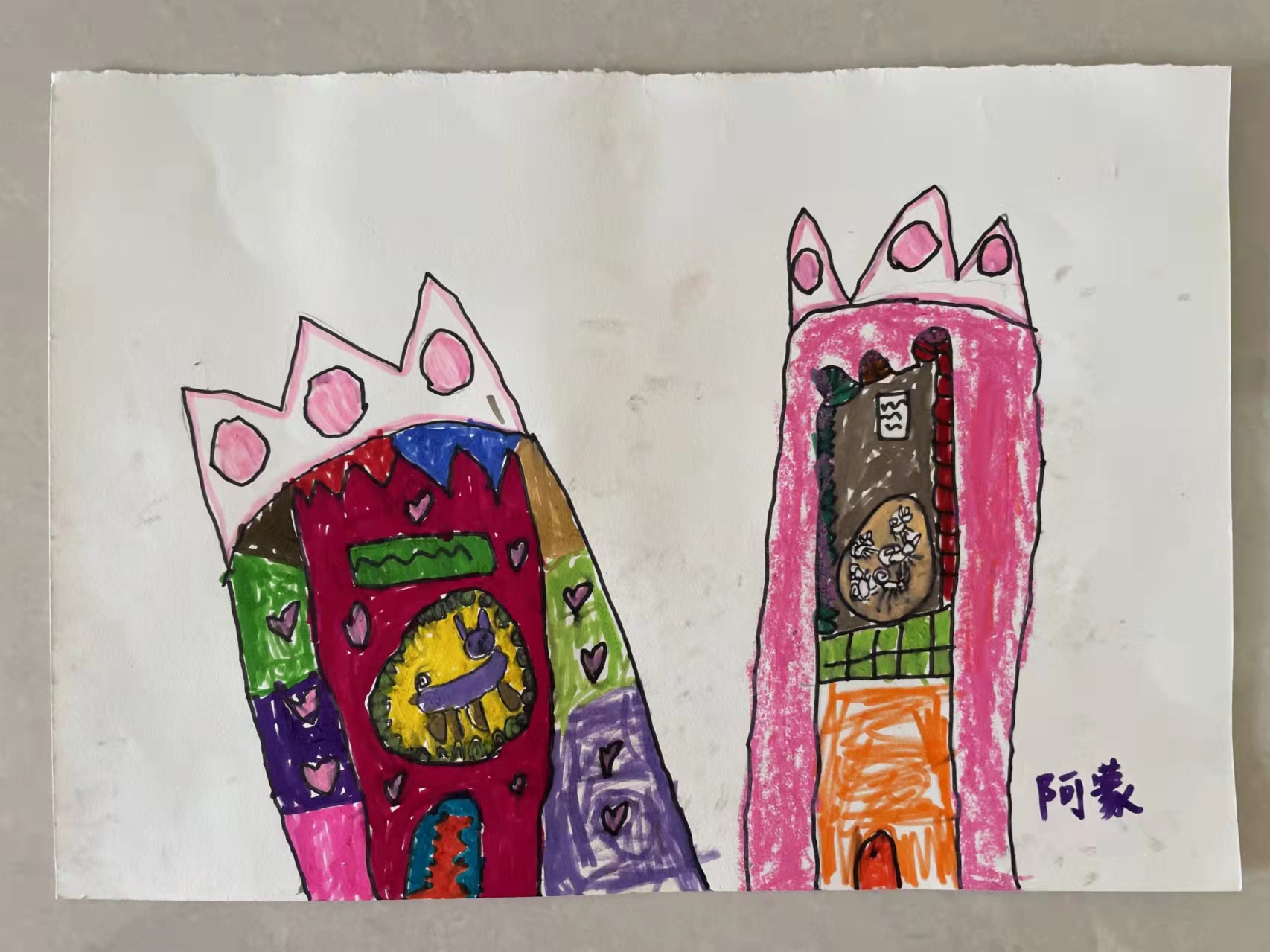作品映照了一个7岁女孩眼里的世界与心中的追求:窗外的鸟、水中的鱼、家里慵懒的猫咪,脑海憧憬的奔马、飞翔的小屋、五彩斑斓的少女,以及作为偶像的“大师”……