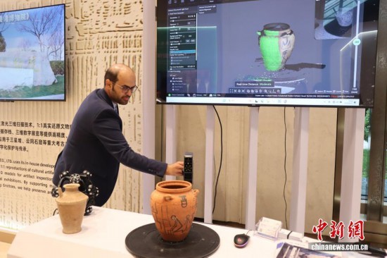 图为外籍嘉宾体验文物扫描技术。中新社记者 李一璠 摄