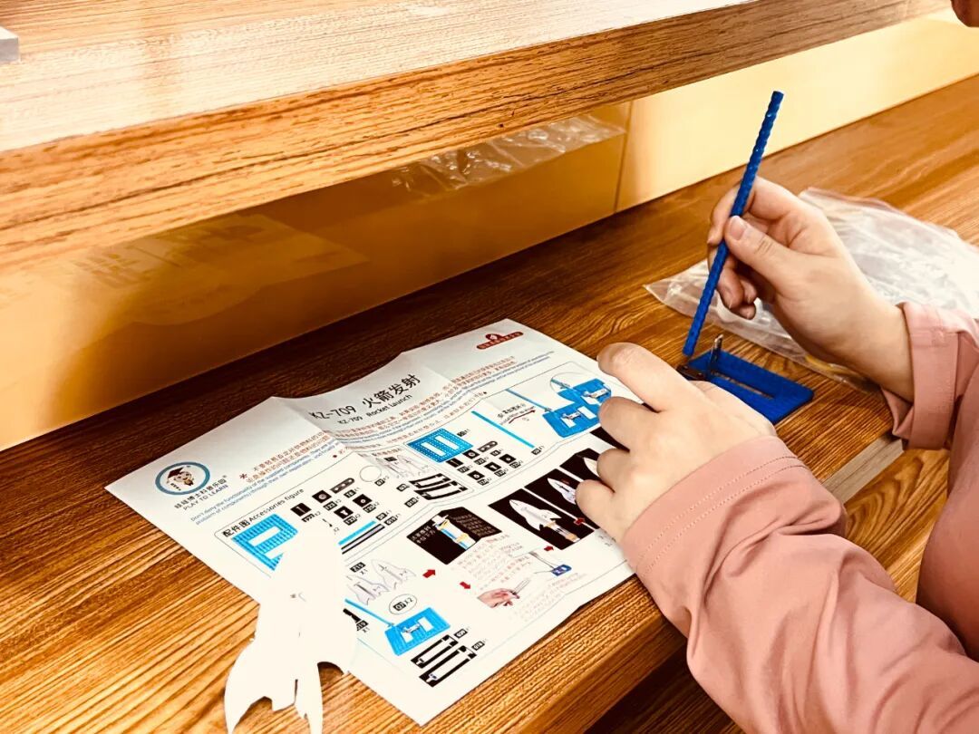 如果说展览区是知识的海洋,那么互动区就是实践的乐园,五种互动手工教具成为本次展览的亮点,让孩子们在动手实践中感受科学的魅力。简易火箭发射装置旁,观众们通过实际操作,学习反作用力原理;潜望镜制作区,孩子们亲手组装,探索光的反射奥秘;下雨报警器实验台前,小科学家们认真调试,理解电路导通原理。这些互动教具不仅体现了我国在高精尖科技领域取得的重大成就,更将复杂的科学原理转化为直观有趣的实践体验。现场工作人员耐心指导,细心讲解,确保每个孩子都能在安全的环境中尽情探索科学的奥秘。