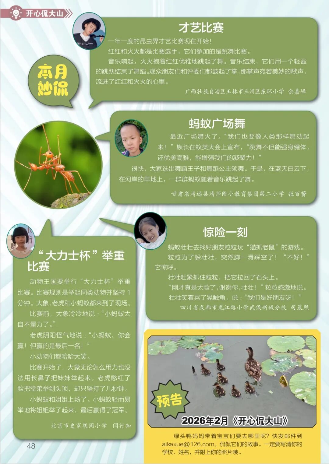 2025年11月《我们爱科学》“开心侃大山”栏目小读者投稿和预告