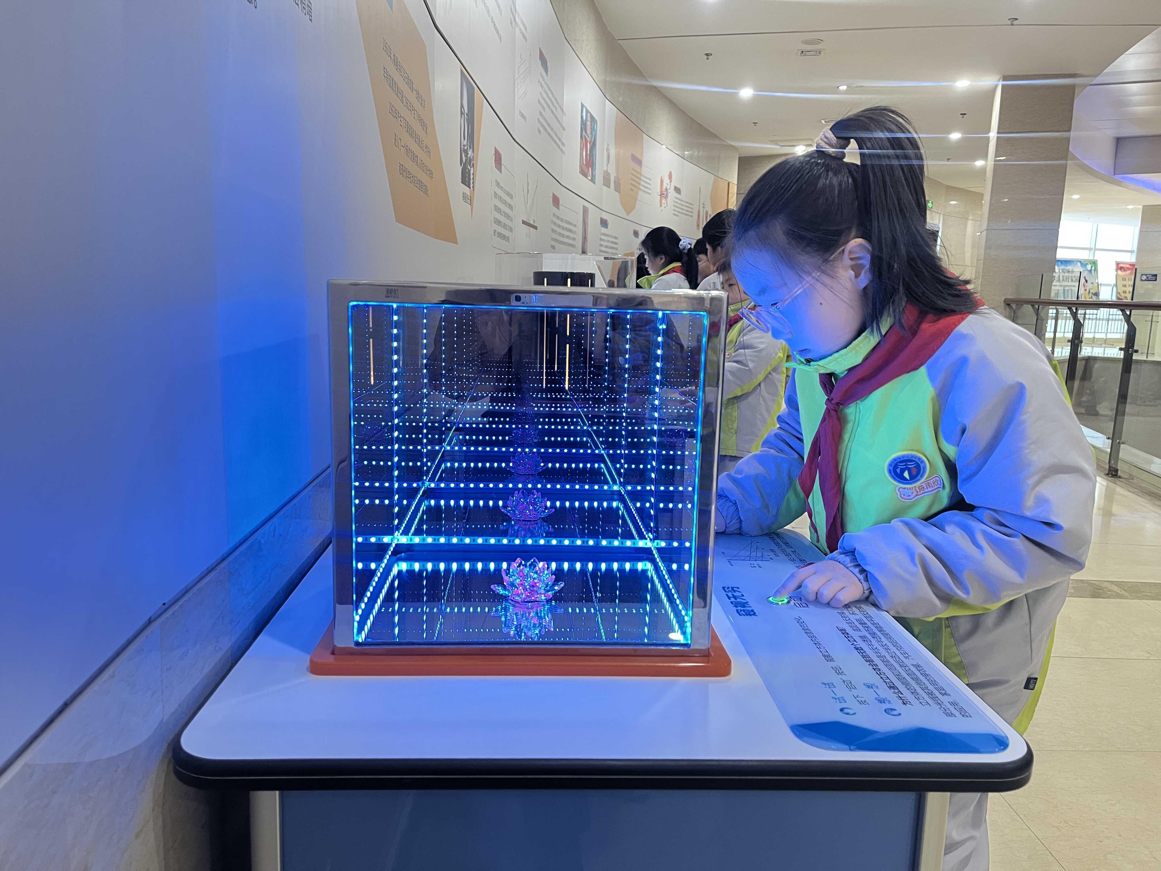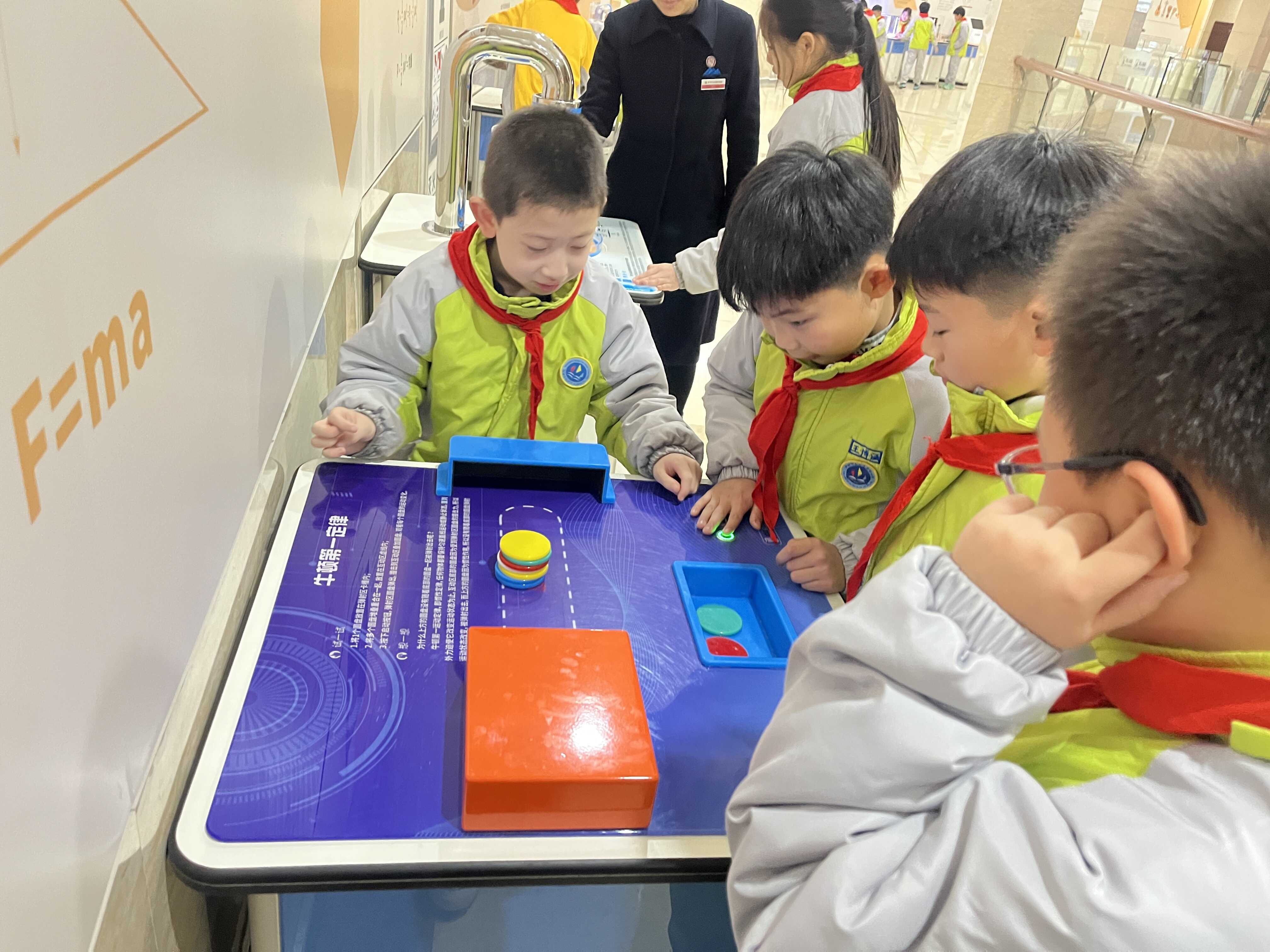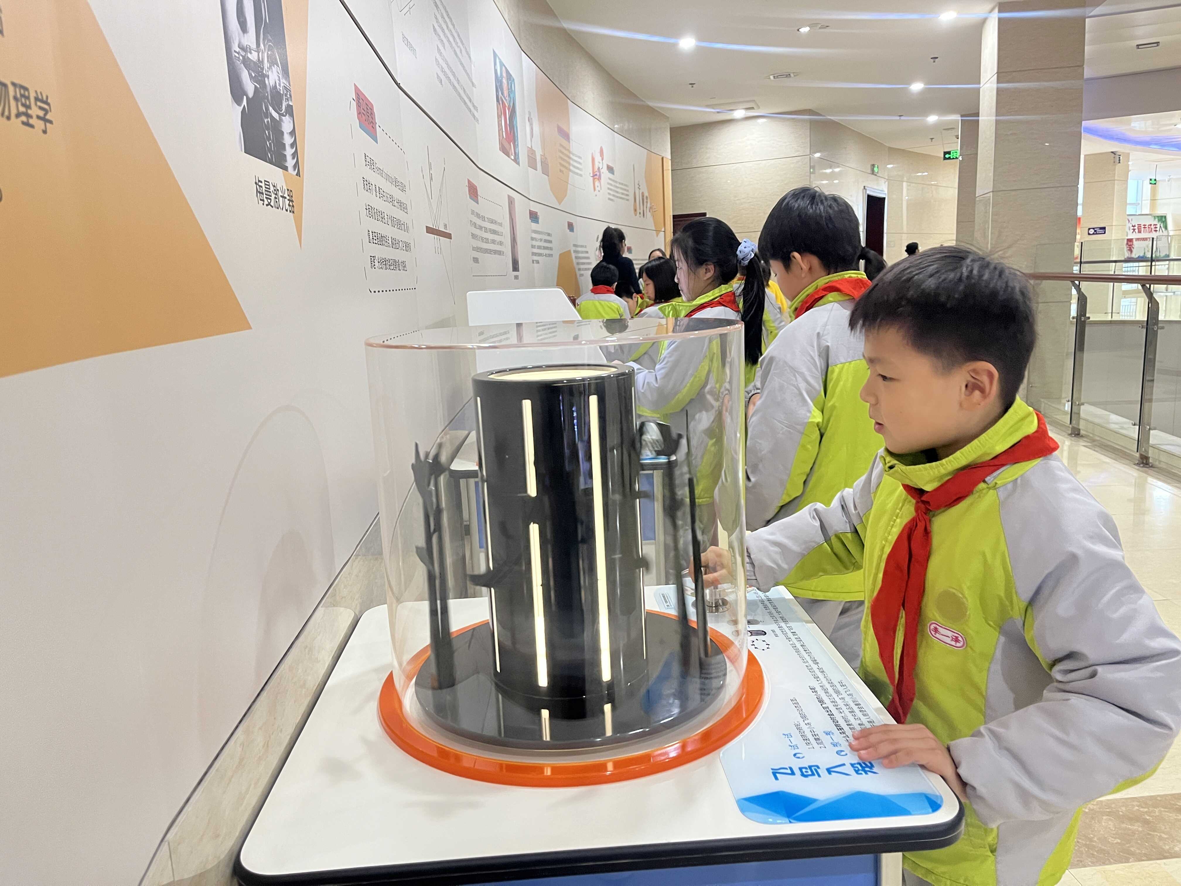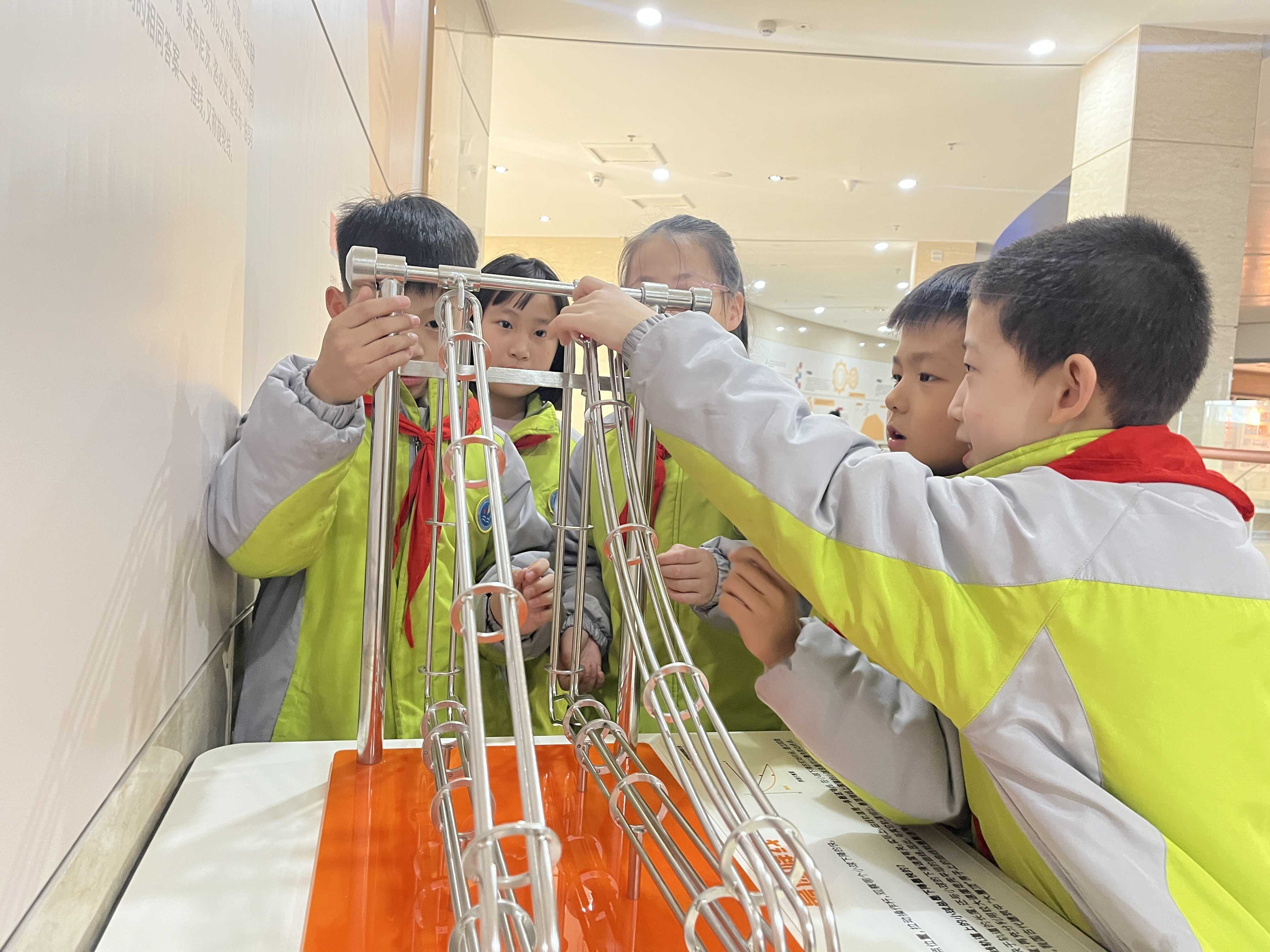 踏入展厅,神秘而有趣味的各类装置牢牢吸引了少先队员们的目光,大家纷纷化身“小小科学家”,在动手操作、趣味探究、协同配合、积极交流中感受科技魅力,让科学的种子在心中生根发芽。