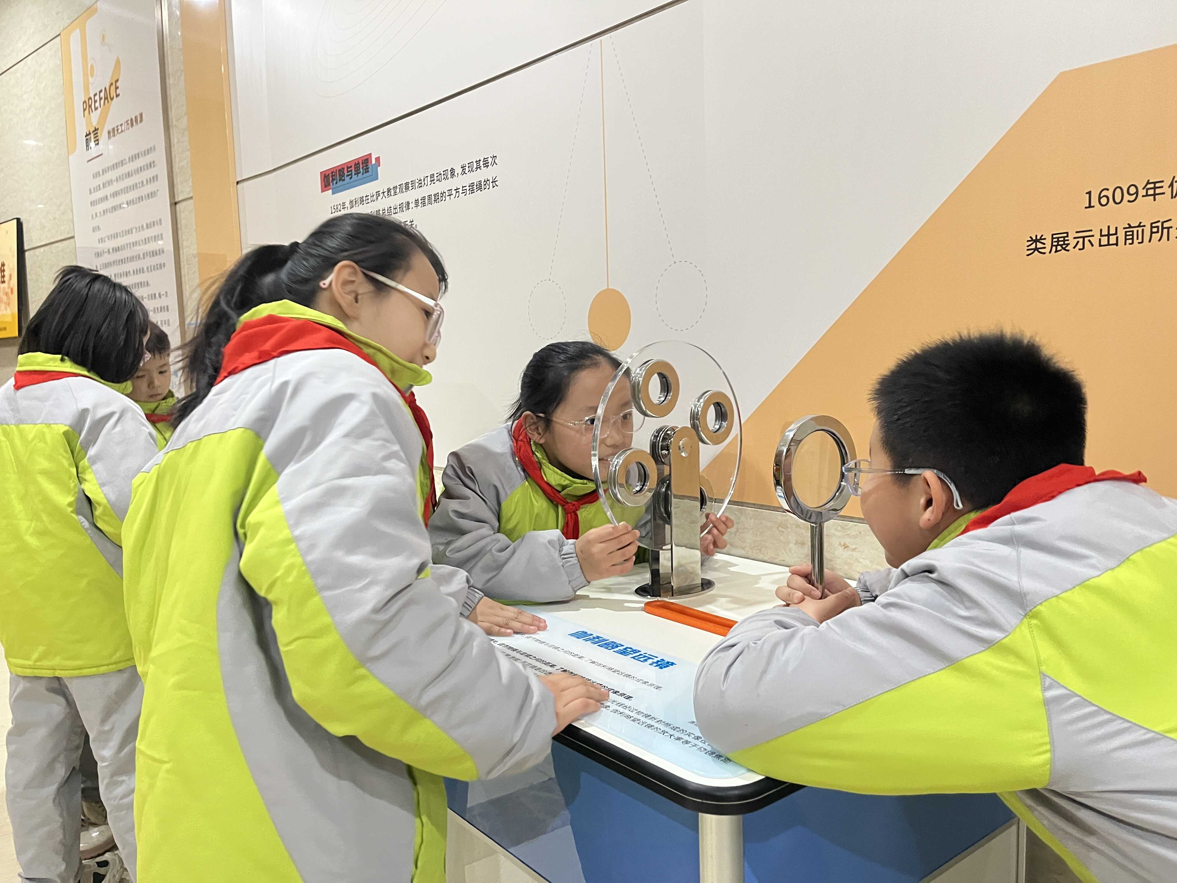 通过重走“现代科学之父”伽利略的探秘之路,少先队员们亲身体验了斜面实验、摆的定律,探索、操纵了行星轨道模型,深刻理解了经典力学的内涵要义与发展历程。“原来科学发现就像寻宝游戏!我刚才亲手转动齿轮、看到小球沿着轨道飞奔,在书本上看到的知识一下子“活”过来了!”少先队员陈雨欣兴奋地说。