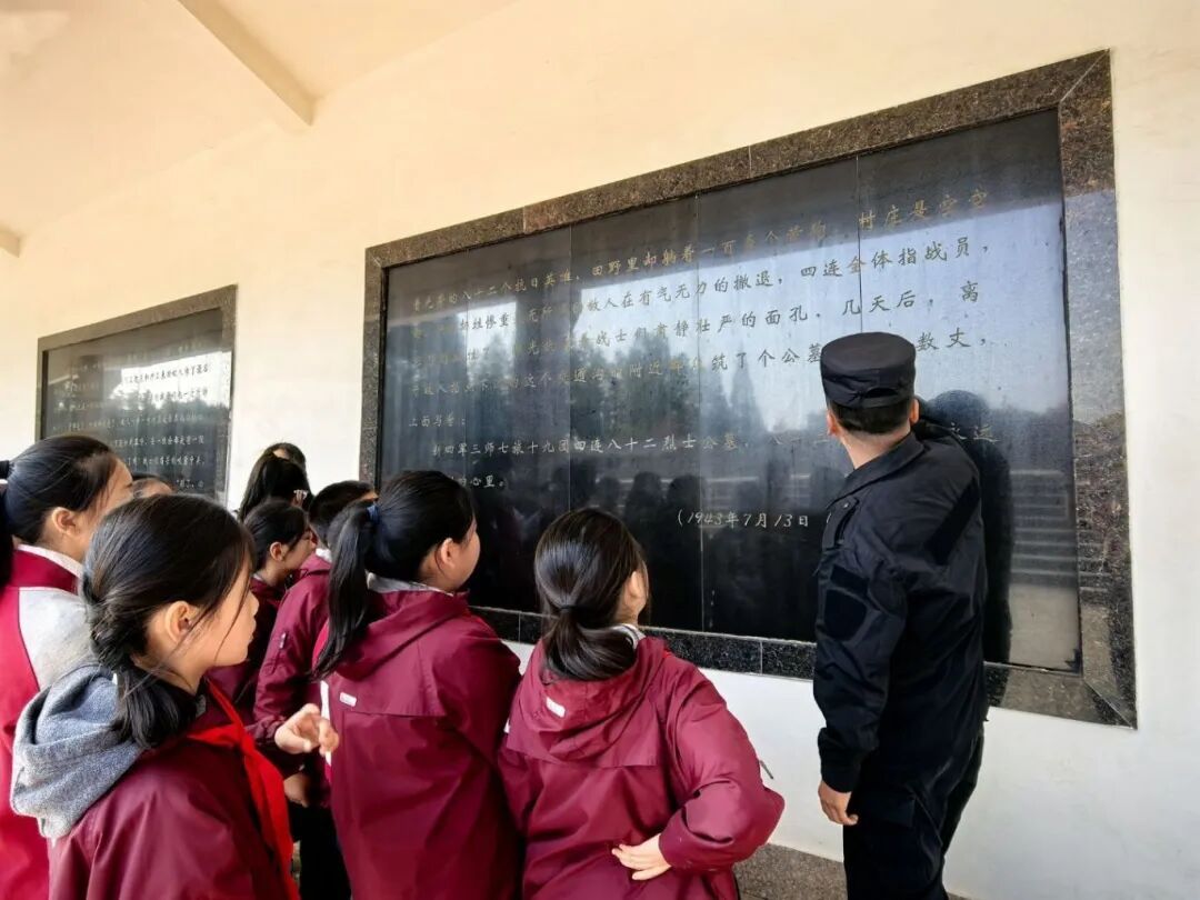 在辅导员老师和教官们的带领下,队员们有序参观了纪念园,深入了解“刘老庄连”八十二烈士的英雄事迹。他们认真聆听讲解,时而驻足凝视,时而低声交流,在历史的回溯中深刻感悟革命先辈的家国情怀与牺牲精神。