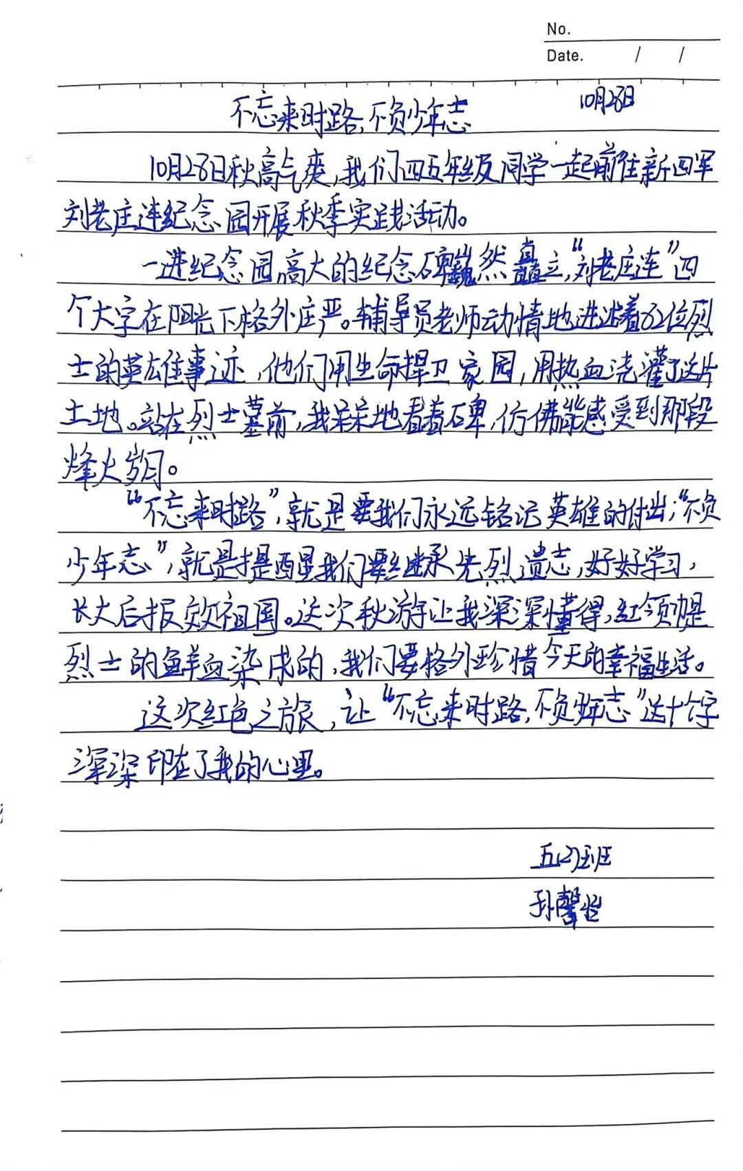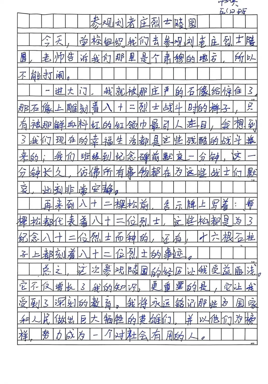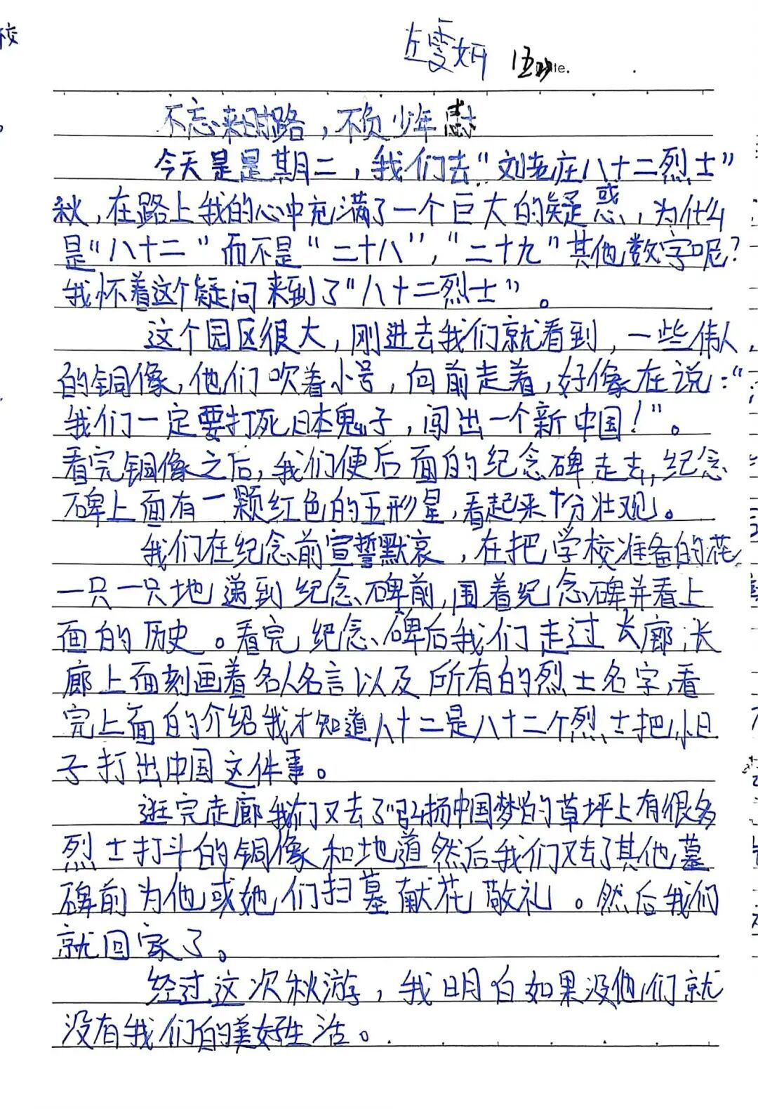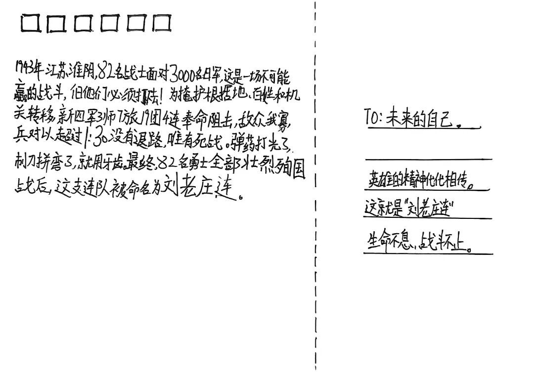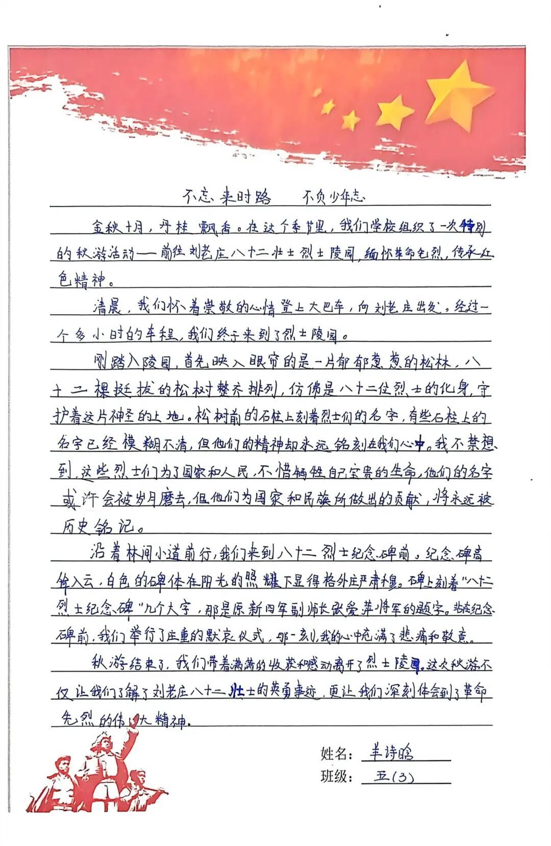 上午的参观活动结束后,队员们感慨良多。下午,四年级的队员们亲手绘制了明信片,五年级的孩子们则将自己的体会书写成了一篇篇动人的文章。他们的作品中传递着的就是要以革命先烈为榜样,勤奋学习、锤炼品格,成长为有理想、有本领、有担当的新时代好少年。