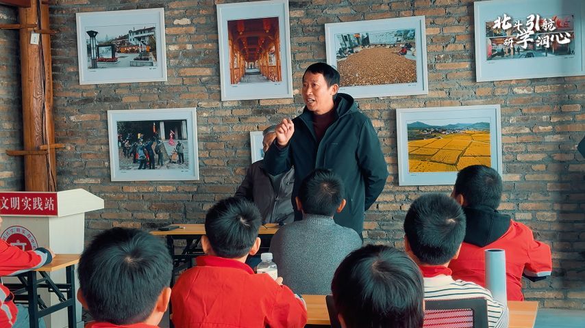勒功学校的王建来老师化身 “文化向导”,循着古巷、古祠的脉络,为孩子们讲述南宋理学家朱宏与朱熹的深厚渊源 —— 朱宏与朱熹志同道合,共同探讨 “存天理、灭人欲” 的理学精要,将 “克己守正” 的家训智慧刻进了沧溪的血脉。