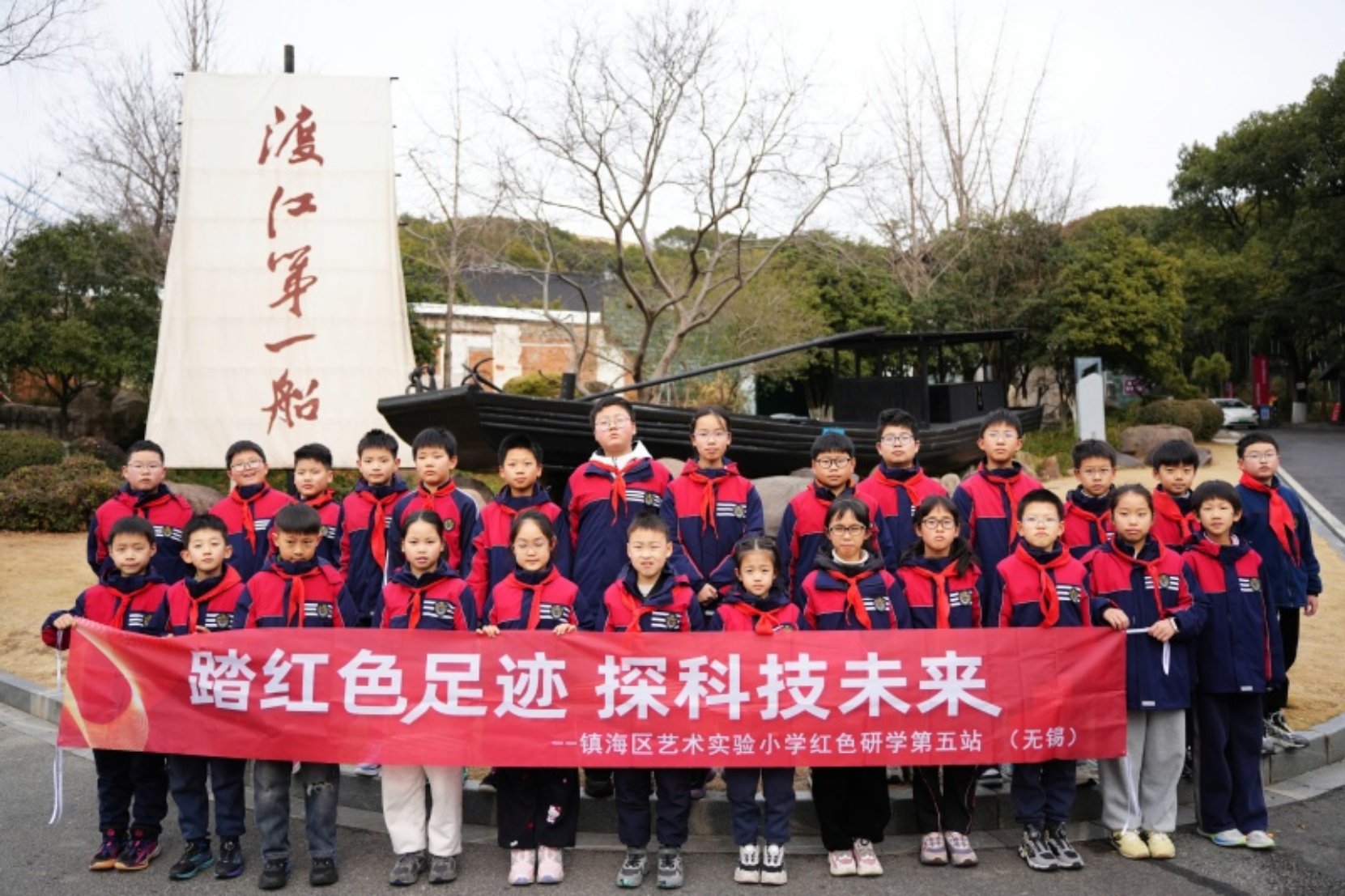 为深化爱国主义教育,厚植家国情怀,培育青少年科技创新精神,寒假期间,镇海区艺术实验小学的26名学子怀揣热忱,奔赴江苏无锡,开启了为期两天的红色研学之旅。本次活动以“踏红色足迹 探科技未来”为主题,作为学校红色研学系列活动的第五站,旨在通过沉浸式体验、实景化学习,引导同学们在追寻红色记忆中传承革命薪火,在探秘前沿科技中点燃创新梦想。