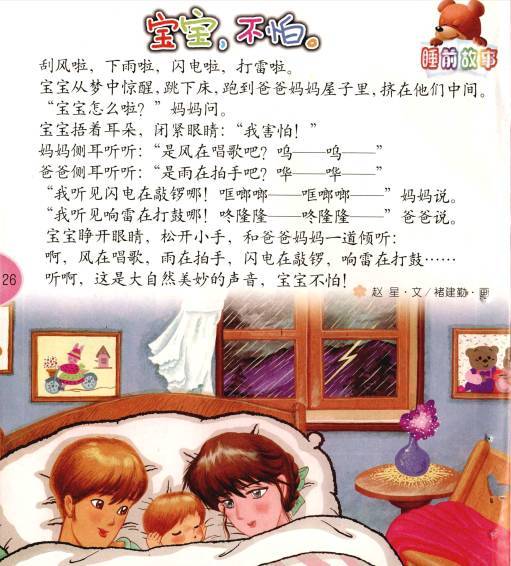 宝宝从梦中惊醒,跳下床,跑到爸爸妈妈屋子里,挤在他们中间。