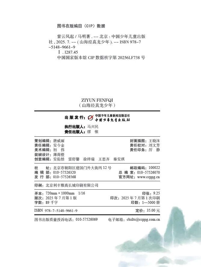 在文稿创作阶段,编辑部就启动“首届儿童创意编辑招募活动”:邀请小读者试读文稿、参加编辑培训,之后收集他们的意见,供作者优化故事细节。最终,来自内蒙古的安佑恬、新疆的雷舒馨、陕西的王思齐、河南的秦安琪、北京的徐梓瑞5位小读者,因意见被采纳,以“创意编辑”身份在《山海经真龙少年 紫云风起》上署名。