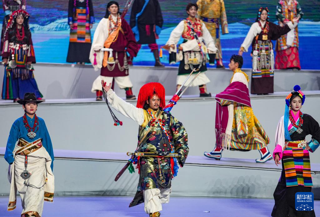 模特在首届西藏“衣脉相承”服饰文化周走秀现场展示传统服饰(2025年1月5日摄)。