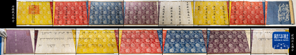 平展开的《永乐十一年封斡喃渴烈思巴为辅教王诰书》(5月20日摄,拼版照片)。新华社记者李贺 摄