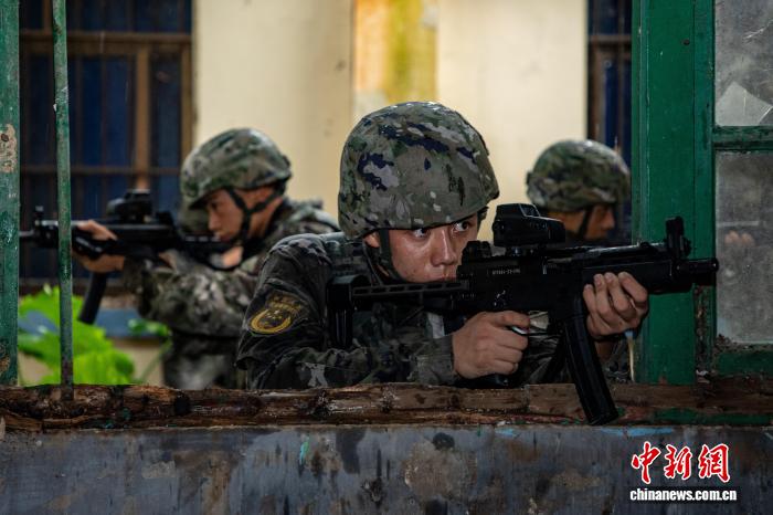 图为武警官兵在交替掩护快速突进。余海洋 摄