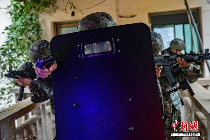 图为武警官兵在密切协同隐蔽接近。卢泳钢 摄
