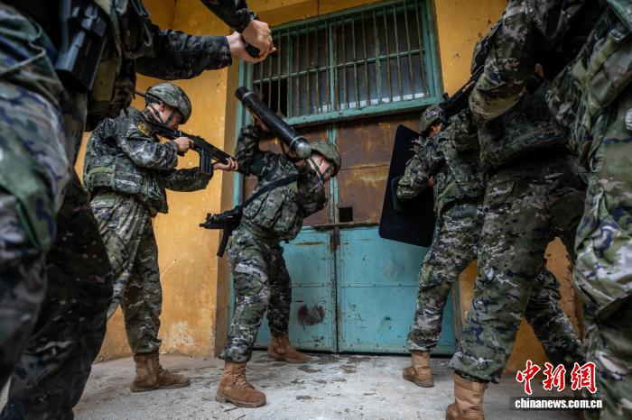 近日,武警广西总队南宁支队在某废弃楼房开展实战化反恐演练,全面锤炼官兵在陌生复杂环境下的应急处置与协同作战能力。演练重点围绕建筑物突入、密闭空间搜索、战术协同等课目展开。此次演练构设高仿真对抗环境,全面锤炼部队在陌生地域和复杂条件下的综合作战能力,为遂行多样化反恐处突任务奠定实战基础。图为武警官兵在撞门突入。卢泳钢 摄