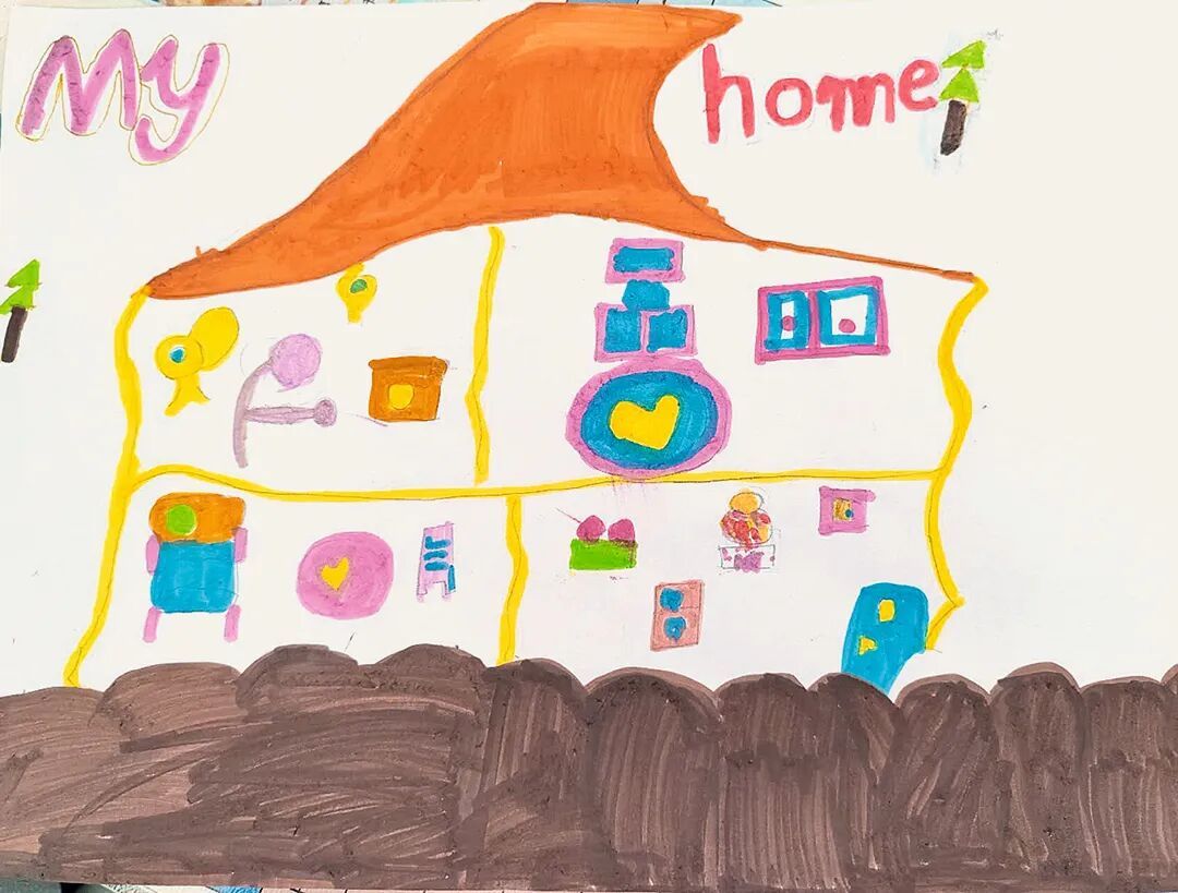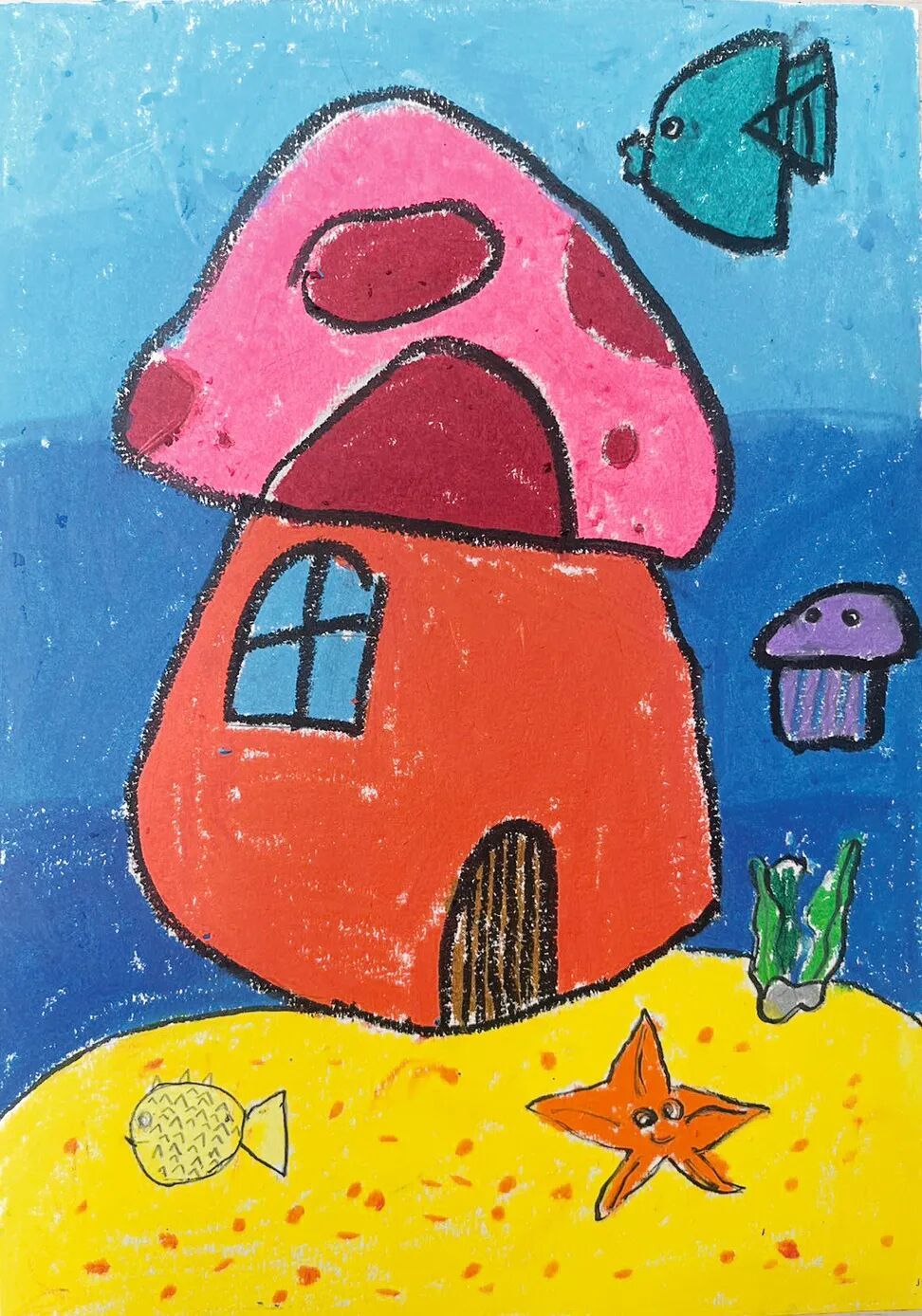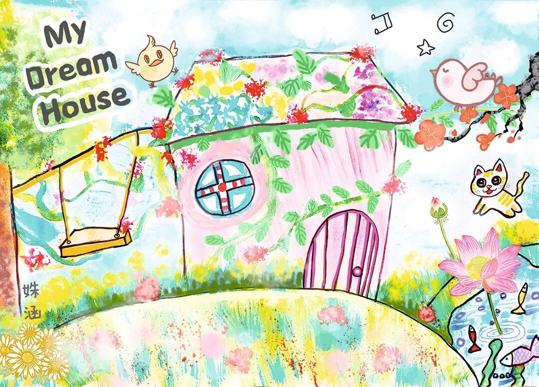 This is my dream house. It looks like a mushroom (蘑菇). It’s pink and orange. It’s in the sea. It’s very nice. I like my house.