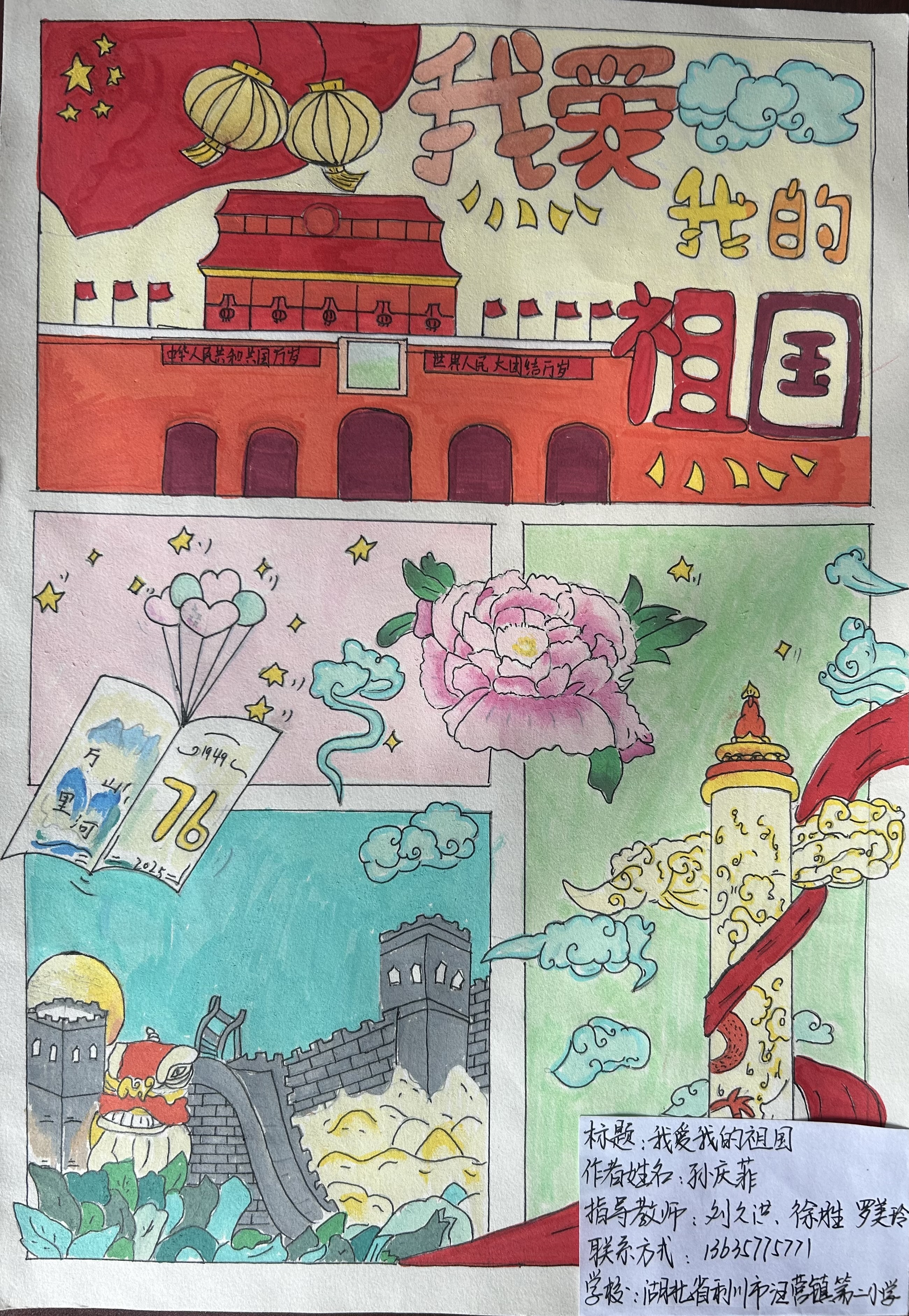 此画名为《我爱我的祖国》,五星红旗迎风飘扬飘,灯笼与气球喜迎国庆,传承中国文化的经典,传递中华民族的深情。翻开书页托起缤纷气球,巧妙融入的“76”字样,轻盈诉说祖国七十六载辉煌岁月。简洁画面,真挚告白,让我们与祖国同心同行,共绘灿烂明天。