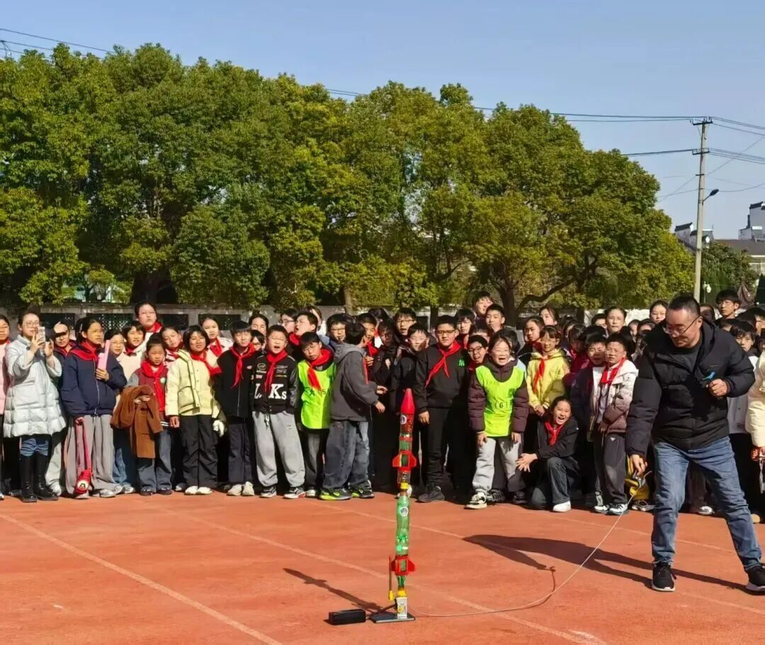 航模表演更是精彩绝伦,橡皮筋动力飞机与扑翼机在蓝天划出优美弧线;水火箭实验趣味十足,随着“3、2、1”的倒数口令,“火箭”应声腾空而起,现场欢呼不断,将开幕式的热烈氛围推向顶点。
