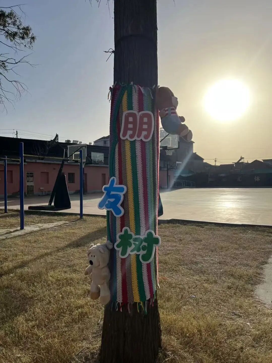 在“科技护树御寒衣”展区,学生们亲手为校园树木穿上了由旧衣物与彩色毛线编织的“冬衣”,既传递着环保理念,也为这个科技节日增添了一抹温暖的色彩。