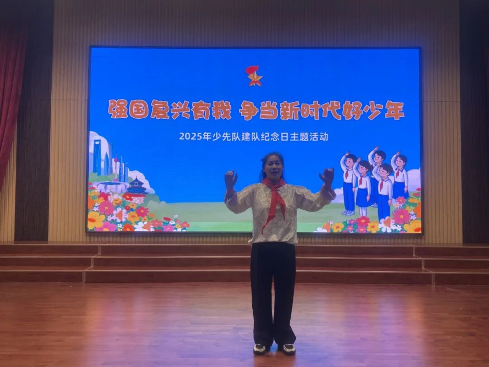 “我们是共产主义接班人,继承革命先辈的光荣传统……”,全场队员齐声高唱《中国少年先锋队队歌》。嘹亮的歌声回荡在校园,唱出了新时代少年对理想的追求,也唱出了他们传承红色基因的坚定决心。