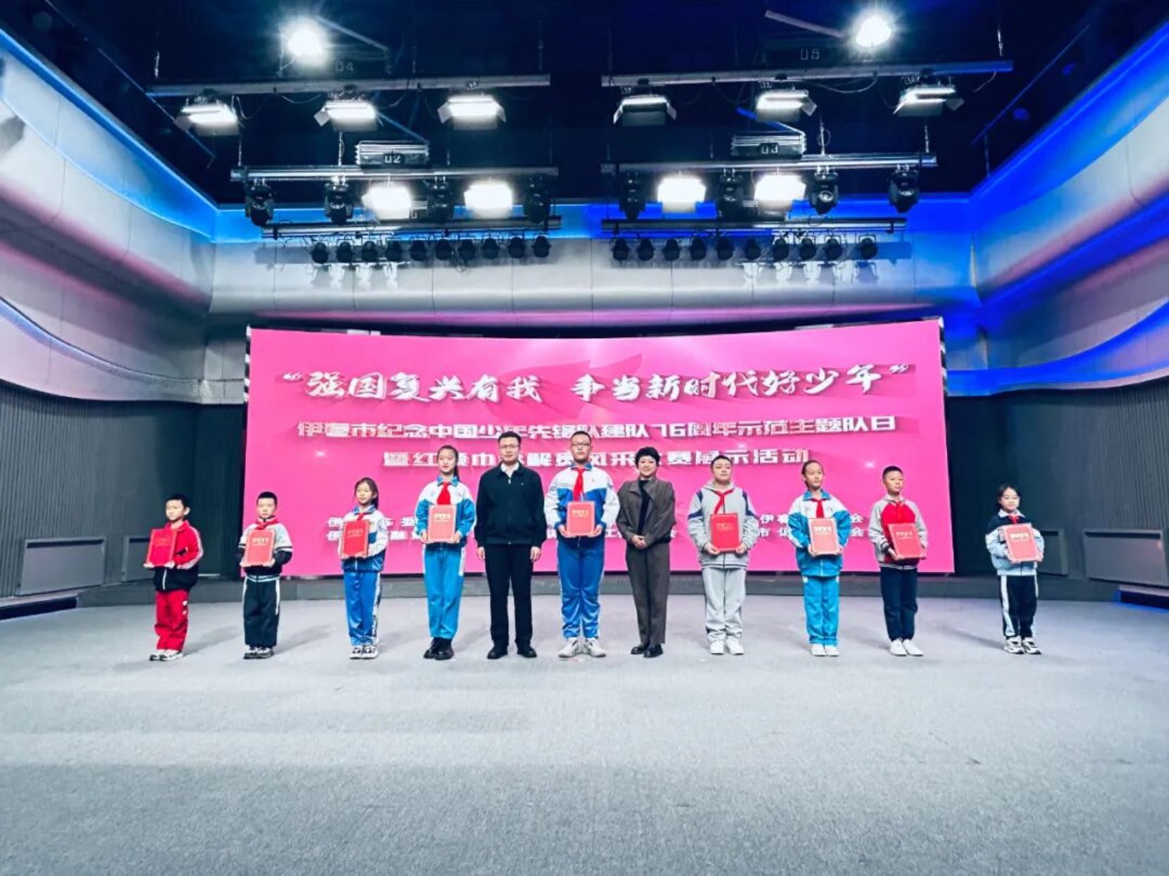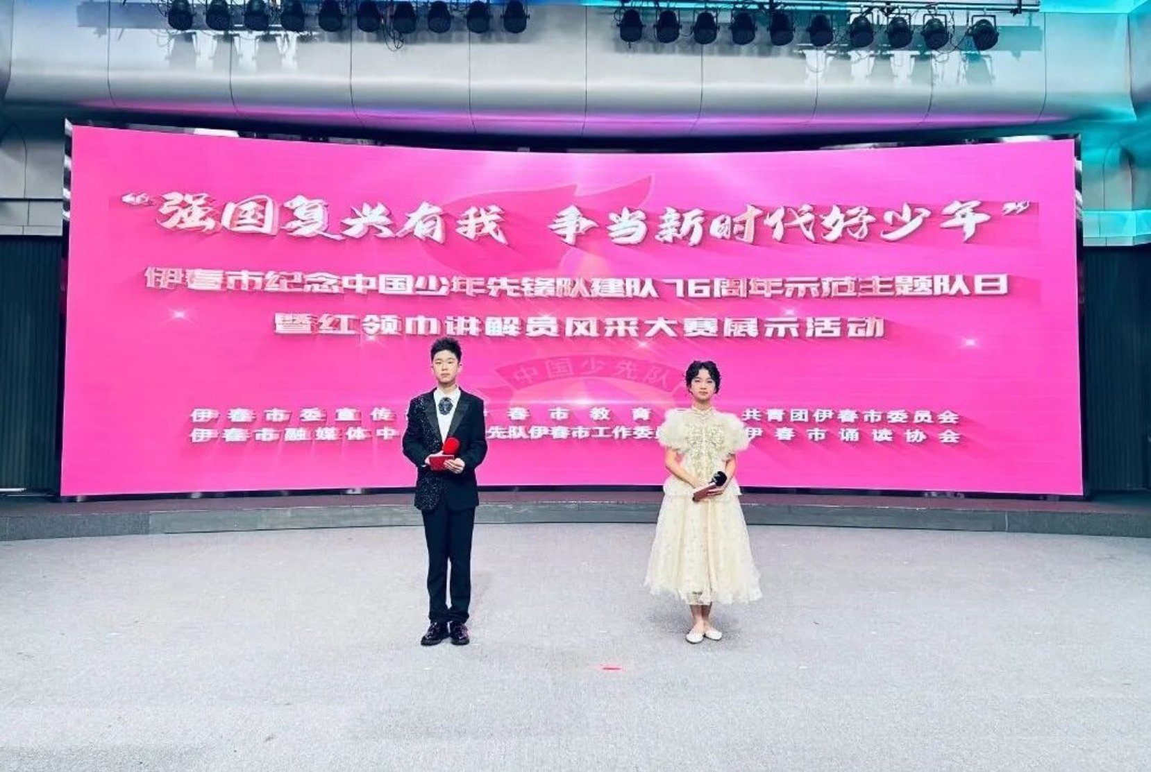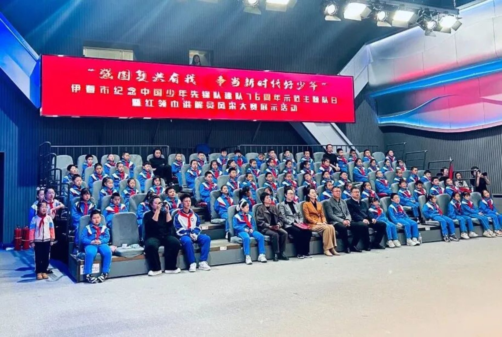 为纪念中国少年先锋队建队76周年,近日,伊春团市委联合市委宣传部、市教育局、市融媒体中心、市少工委、市诵读协会主办的“强国复兴有我 争当新时代好少年”示范主题队日暨红领巾讲解员风采大赛展示活动在伊春市融媒体中心演播厅圆满举行。