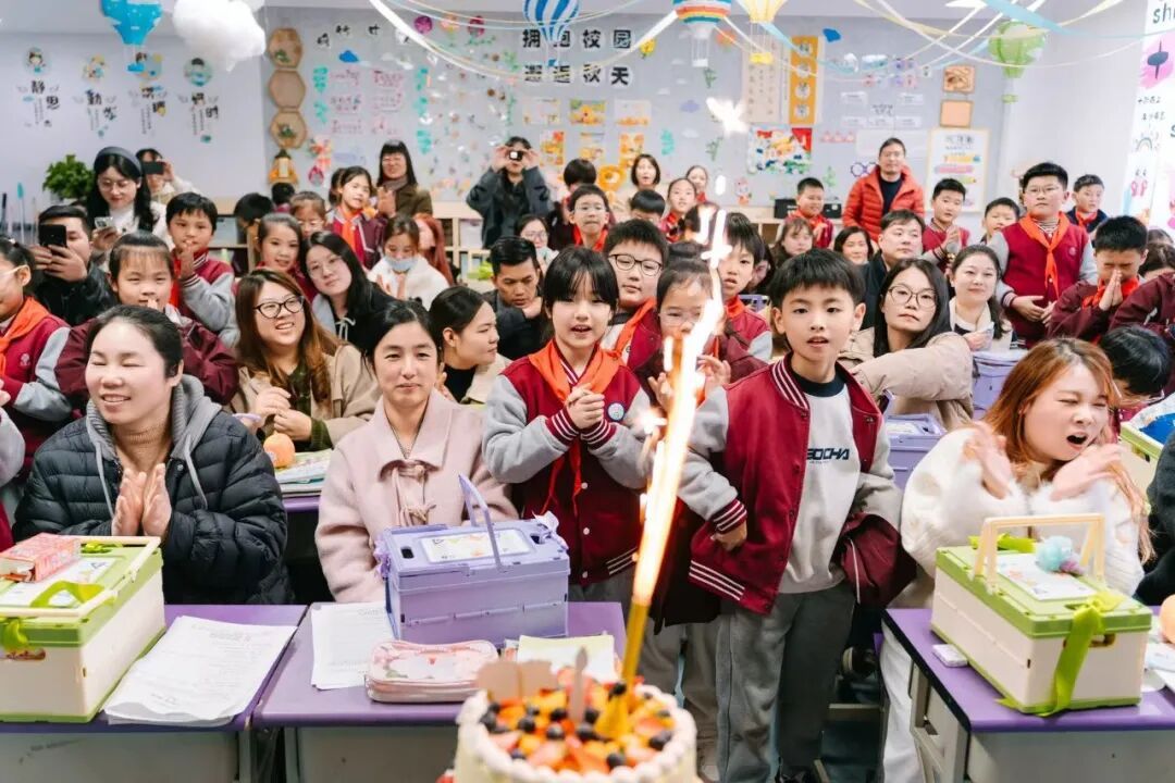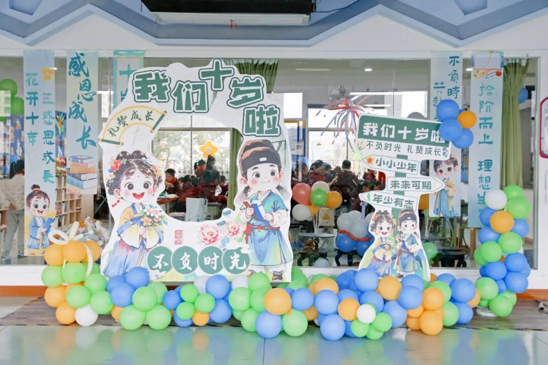 最温馨的环节莫过于集体庆生。歌声过后,孩子们在学生代表的带领下庄严宣誓,坚定的誓言回荡在每个人心间。随后,他们迈过寓意深远的“成长行善”拱门,从老师手中接过寄托祝福的成长果,并用合影的方式,为十岁这个人生的里程碑刻下了最温暖的印记。