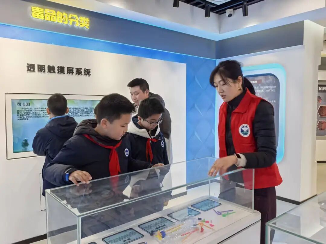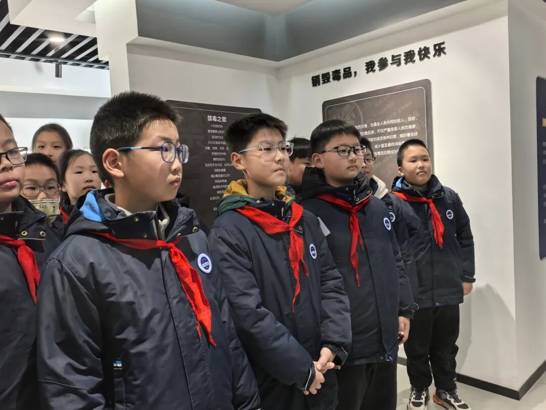 在基地讲解员的带领下,队员们依次走进禁毒历史长廊、毒品模型展台、危害体验空间与互动宣教区域。通过一幅幅真实图片、一件件仿真模型、一段段震撼案例以及高科技互动装置,队员们系统认识了毒品的多样形态与隐蔽特征,深刻体会到毒品对个人、家庭与社会带来的深重伤害。参观过程中,队员们神情专注,积极发问,展现出二实小学子勤思善学、明辨笃行的精神风貌。