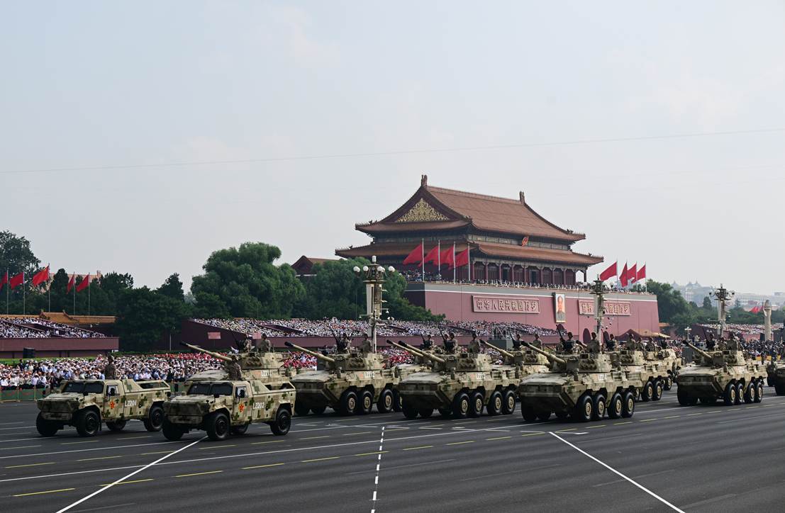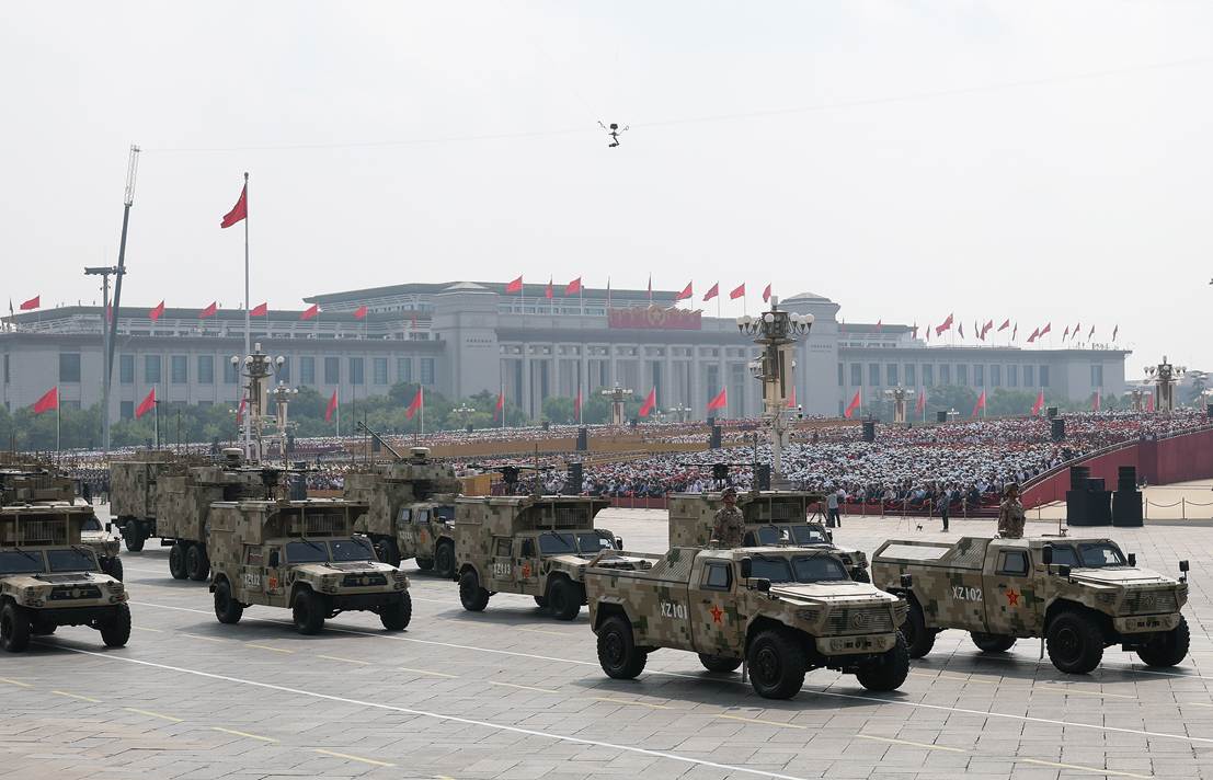 这是全世界一切爱好和平的国家和人民的庄重典礼。各界代表和群众汇聚天安门广场,共同铭记历史、缅怀先烈、珍爱和平、开创未来。在阅兵现场,东风汽车生产的89辆东风“猛士”军车亮相,展示“中国军车第一品牌”的荣耀。