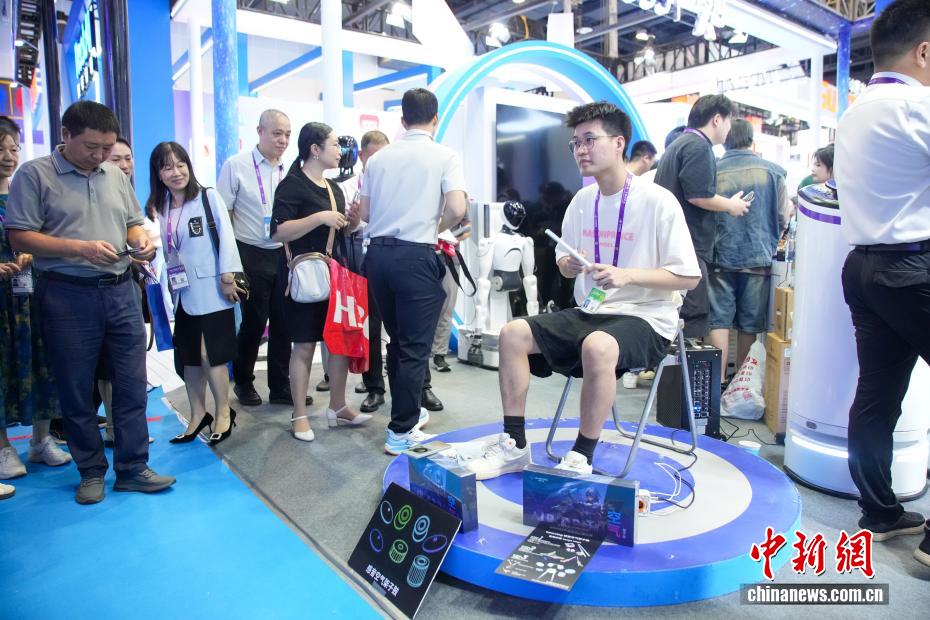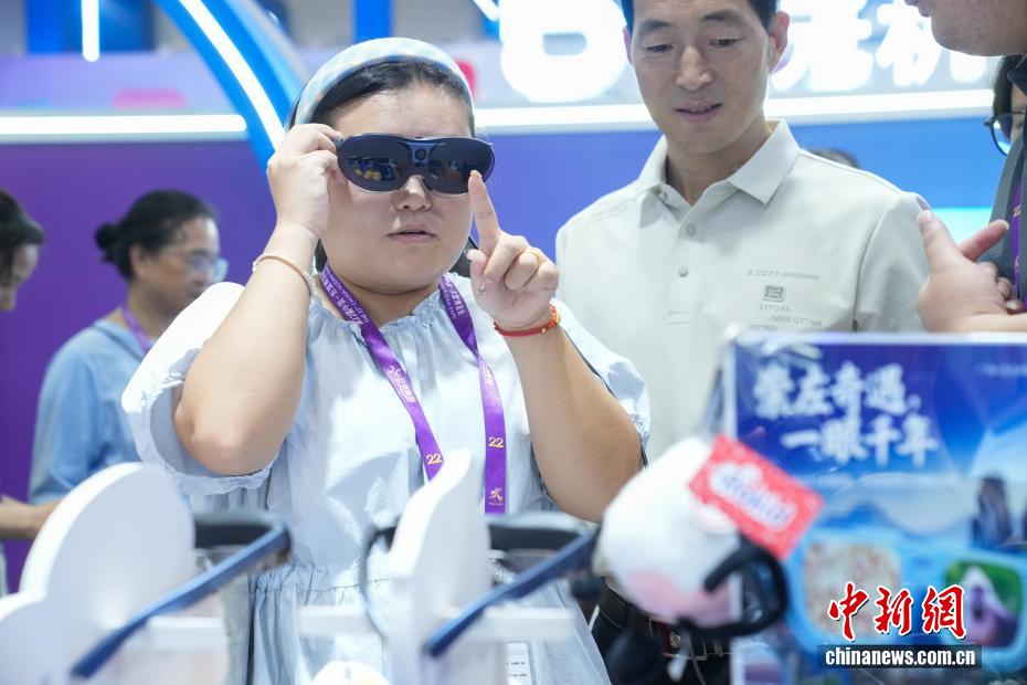 9月17日,正在广西南宁举行的第22届中国—东盟博览会现场,展出的不少先进科技产品成为焦点。图为参会者佩戴增强现实(AR)眼镜领略广西崇左风光。