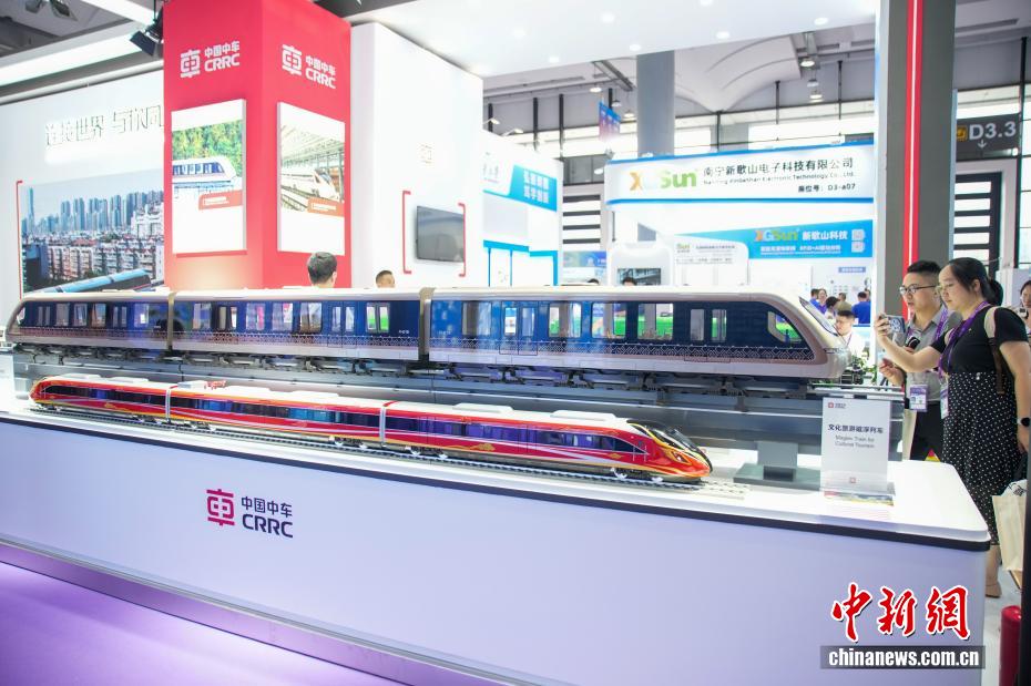 9月17日,正在广西南宁举行的第22届中国—东盟博览会现场,展出的不少先进科技产品成为场上的焦点。图为现场展出的列车模型。