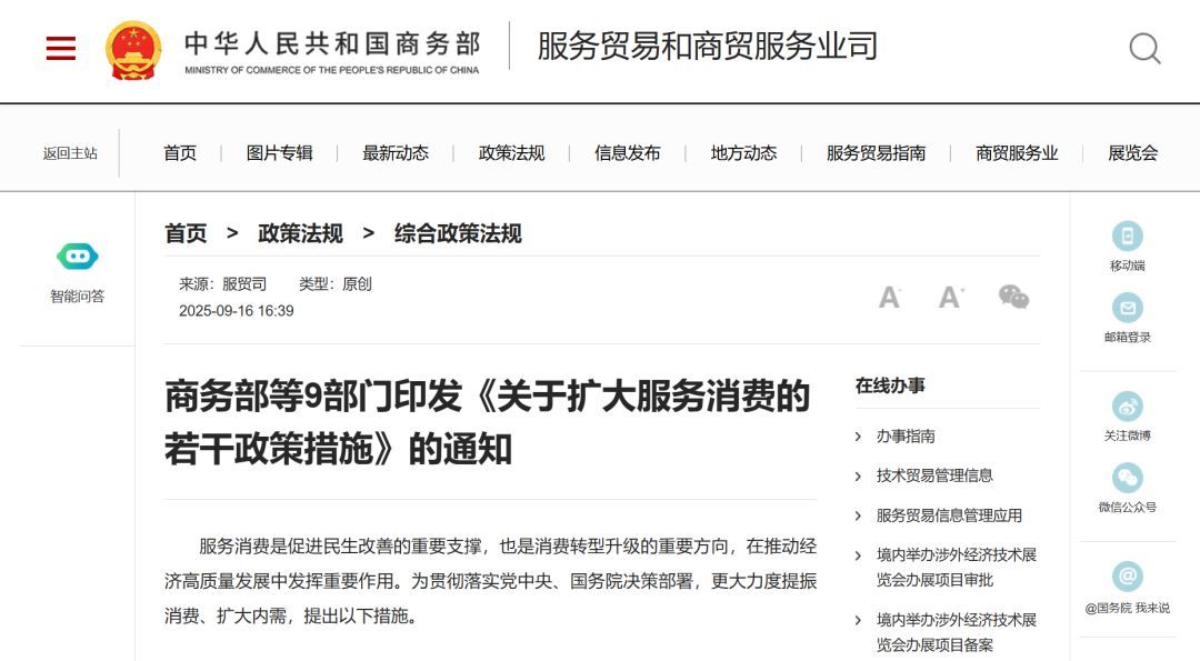 《关于扩大服务消费的若干政策措施》