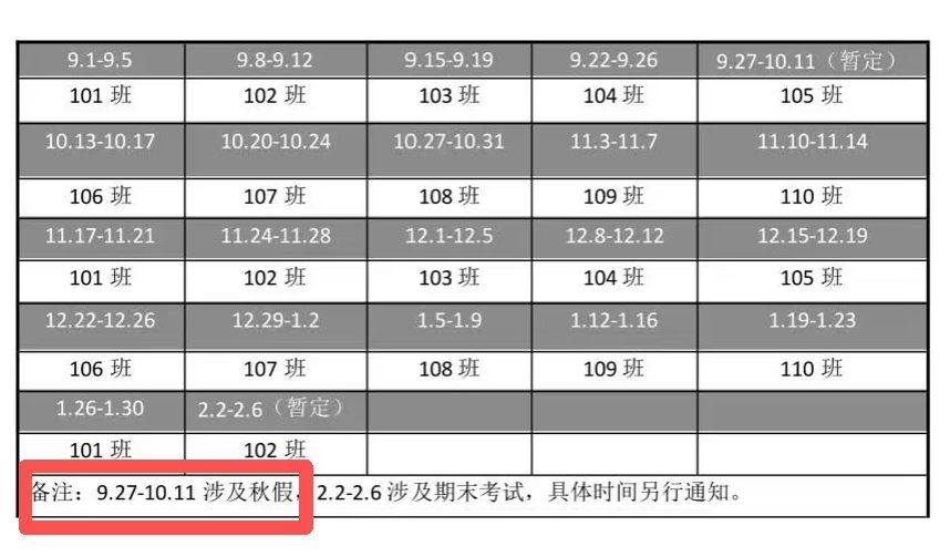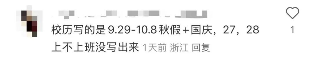 还有网友直接晒出了学校校历,上面写着9.27-10.11涉及秋假——