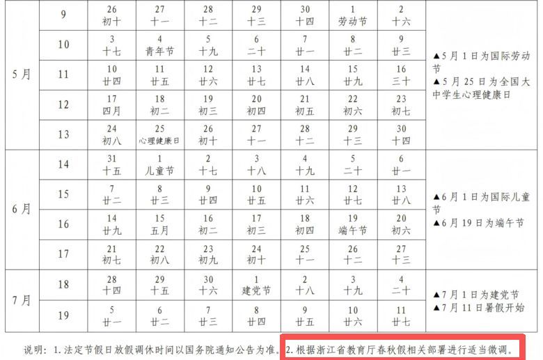 台州市教育局发布的台州市2025学年中小学教学历中多了这样一句话:根据浙江省教育厅春秋假相关部署进行适当微调。