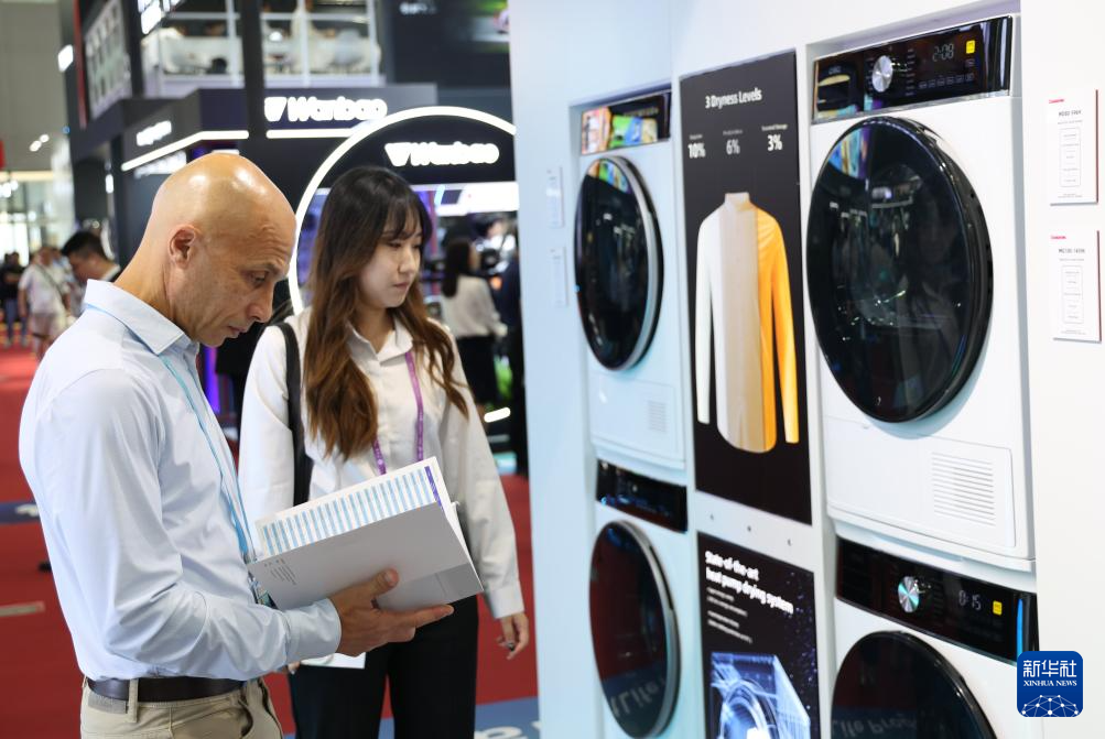 10月15日,客商在广交会上咨询了解智能洗衣机。