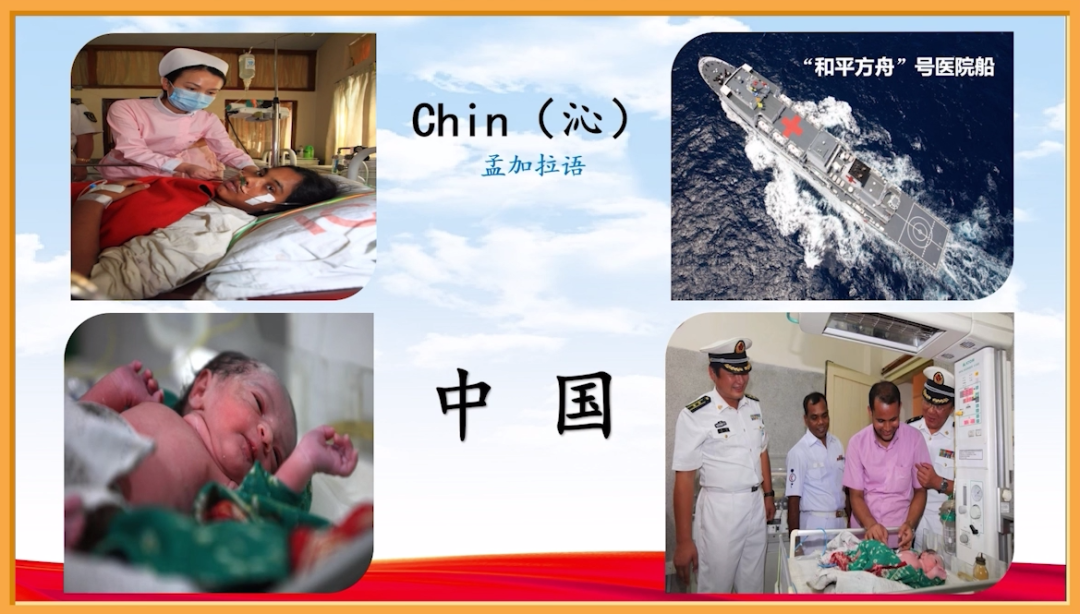 故事发生在2010年的孟加拉国,一位患有严重心脏病的母亲遭遇难产,生命危在旦夕。当时正在孟加拉国访问的中国“和平方舟”号医院船接到求助后,第一时间赶赴当地医院为那位母亲进行了剖宫产手术,最终,这位母亲平安生下一个女孩。为了表示感谢,女孩的父亲给她起名(Chin),谐音为汉字“沁”,孟加拉语的意思就是“中国”。