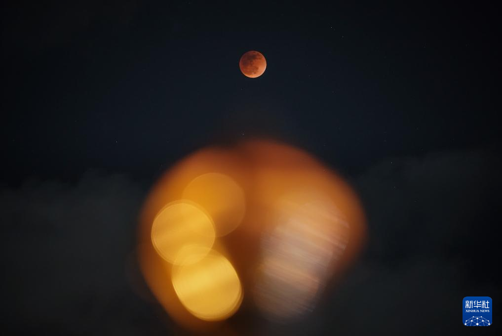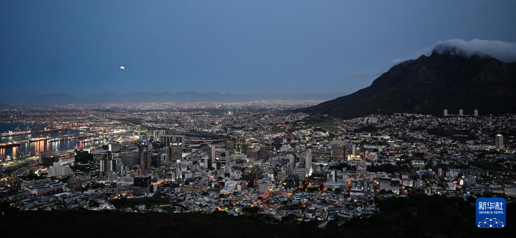 这是9月7日在南非开普敦拍摄的城市夜空中的月食。