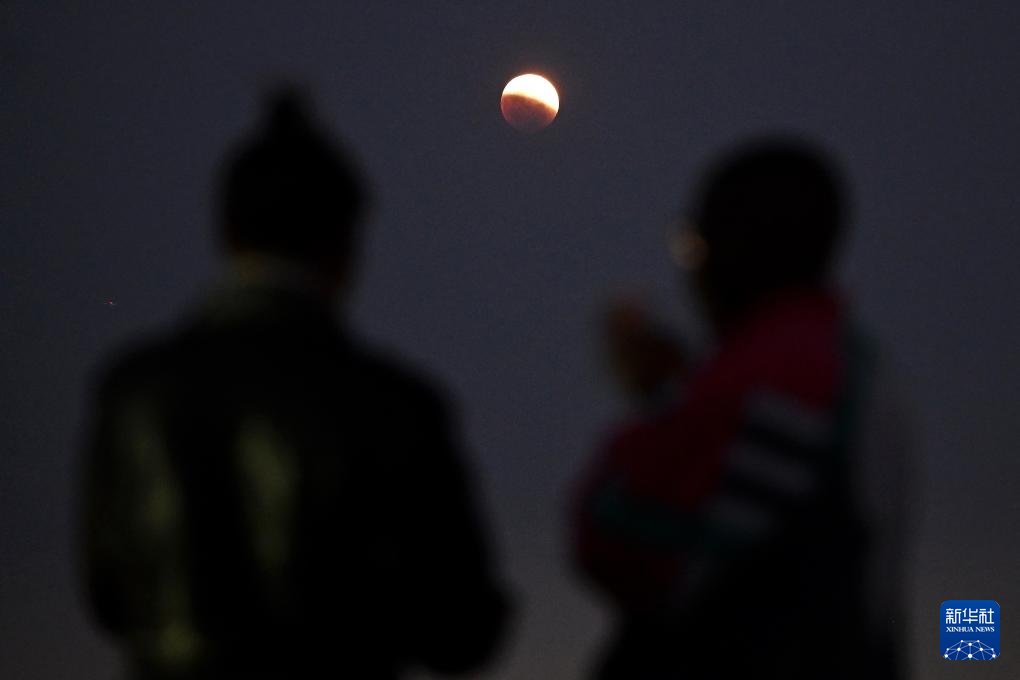 这是9月7日在塔吉克斯坦杜尚别拍摄的月食。