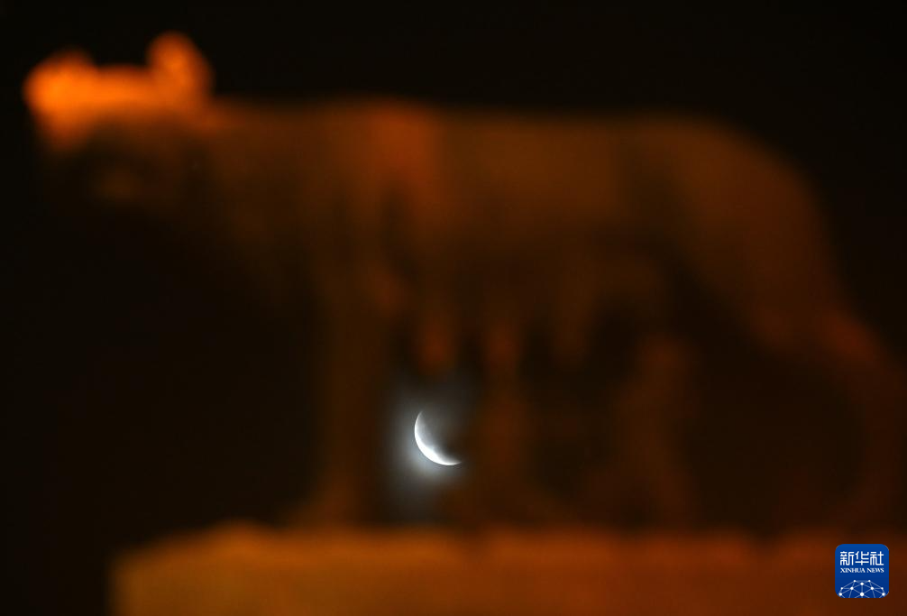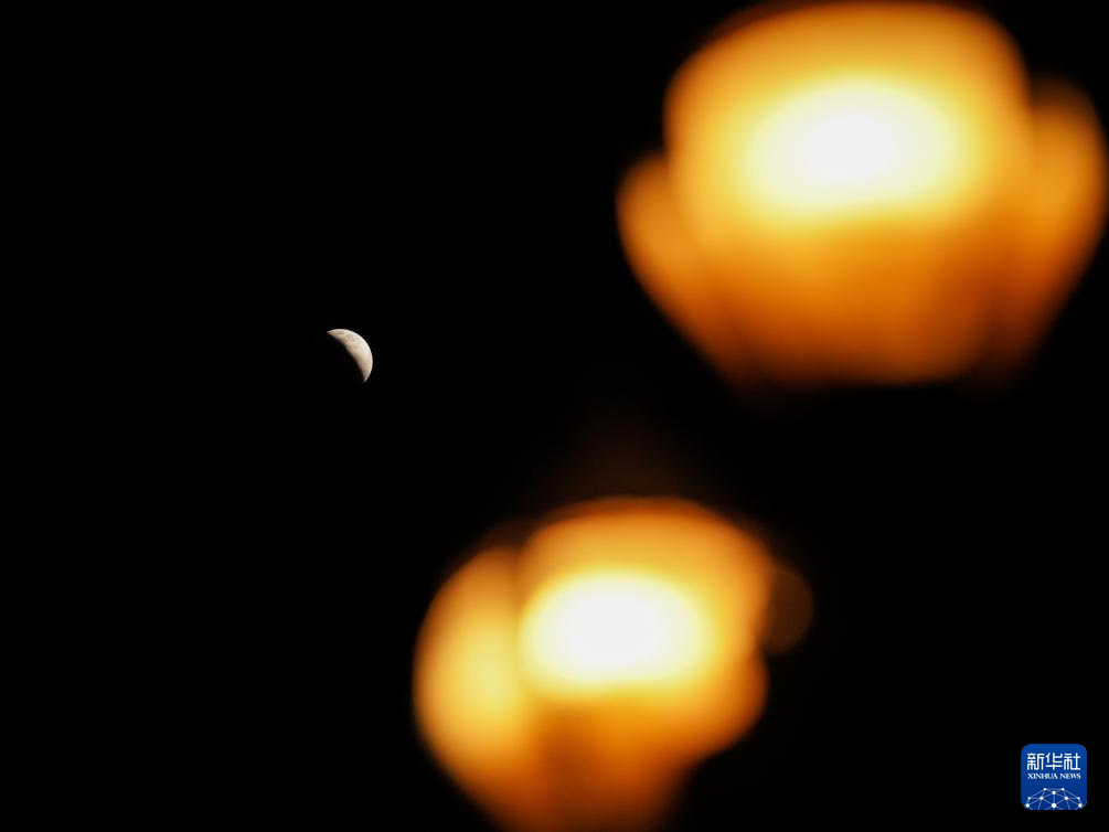 这是9月7日晚在沙特阿拉伯首都利雅得拍摄的月食。