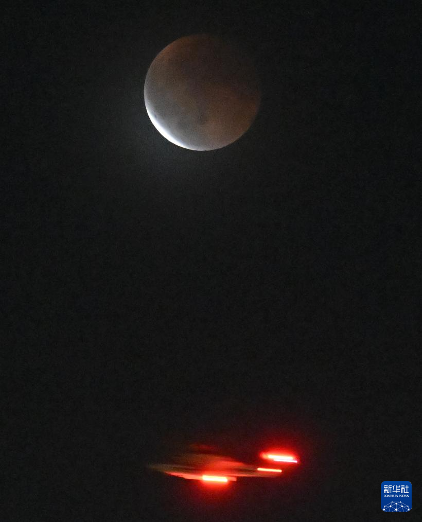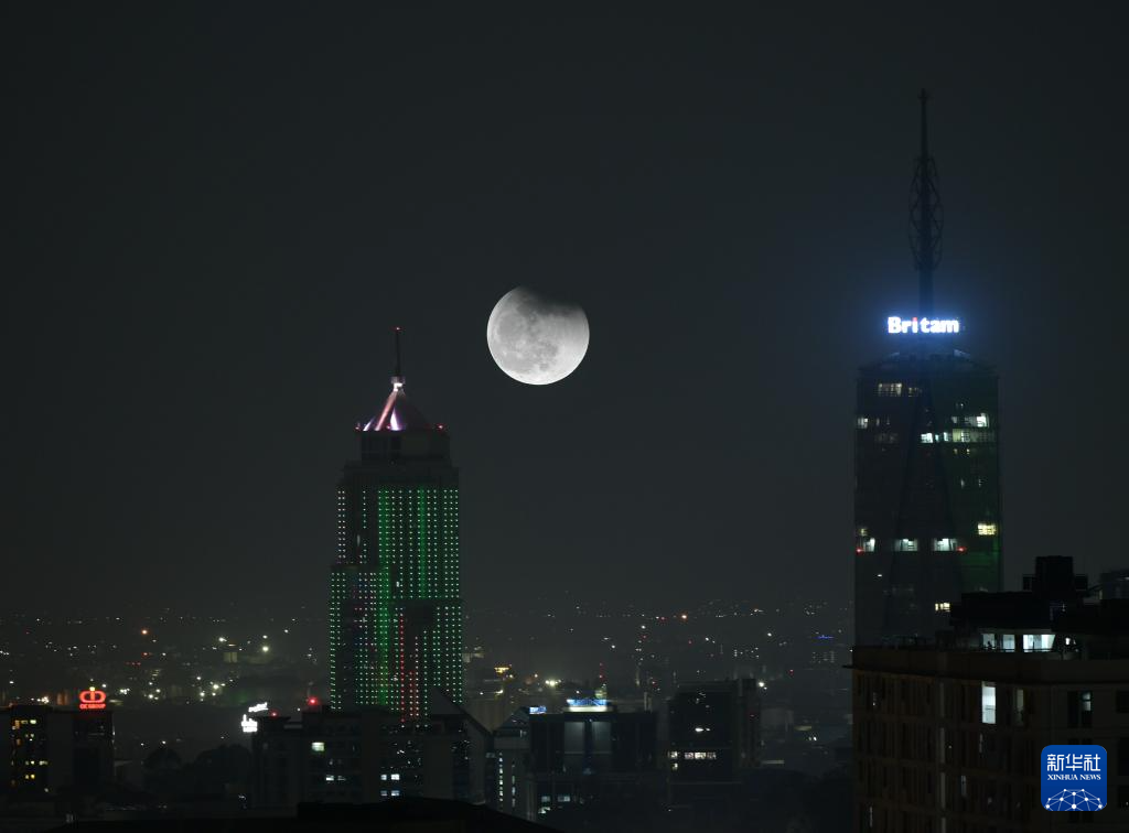 这是9月7日晚在肯尼亚首都内罗毕拍摄的月食。