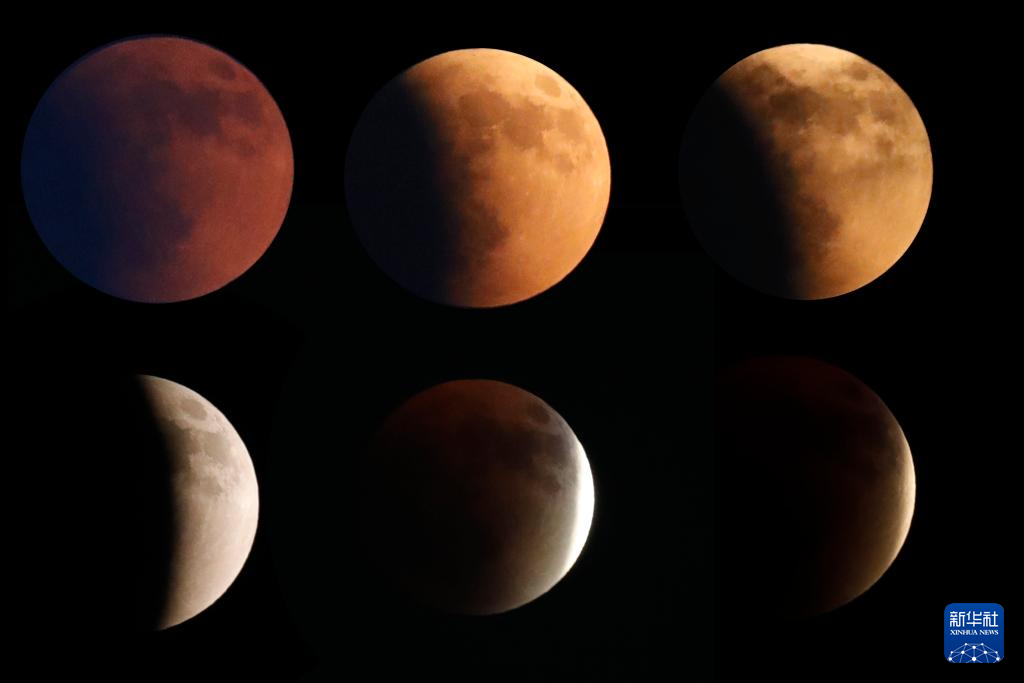 这是9月7日在埃及开罗拍摄的月全食过程(拼版照片)。