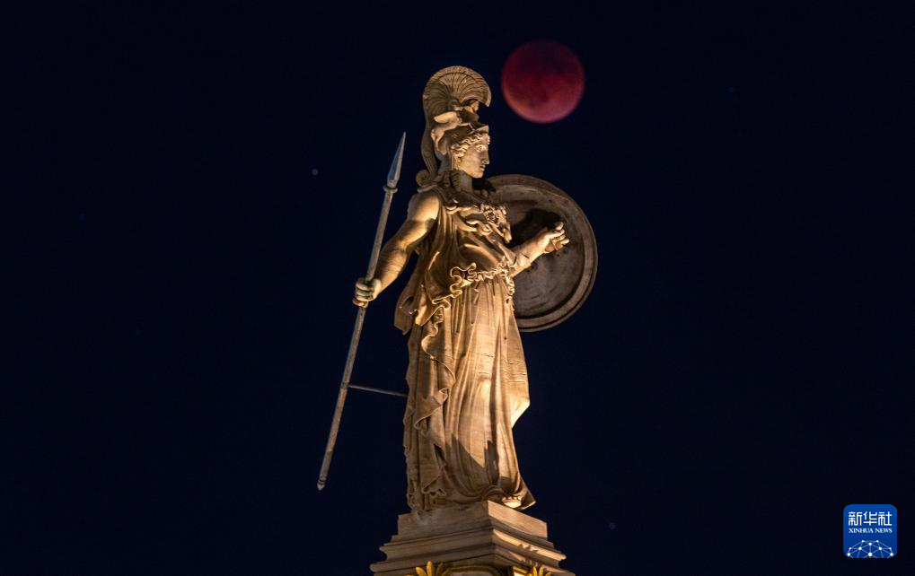 这是9月7日在希腊首都雅典拍摄的“红月亮”。