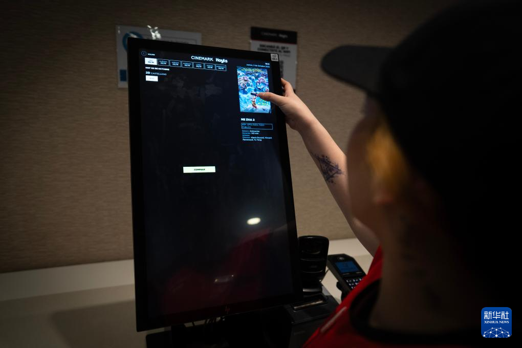 10月2日,一名售票员在阿根廷首都布宜诺斯艾利斯的影院售卖《哪吒2》电影票。
