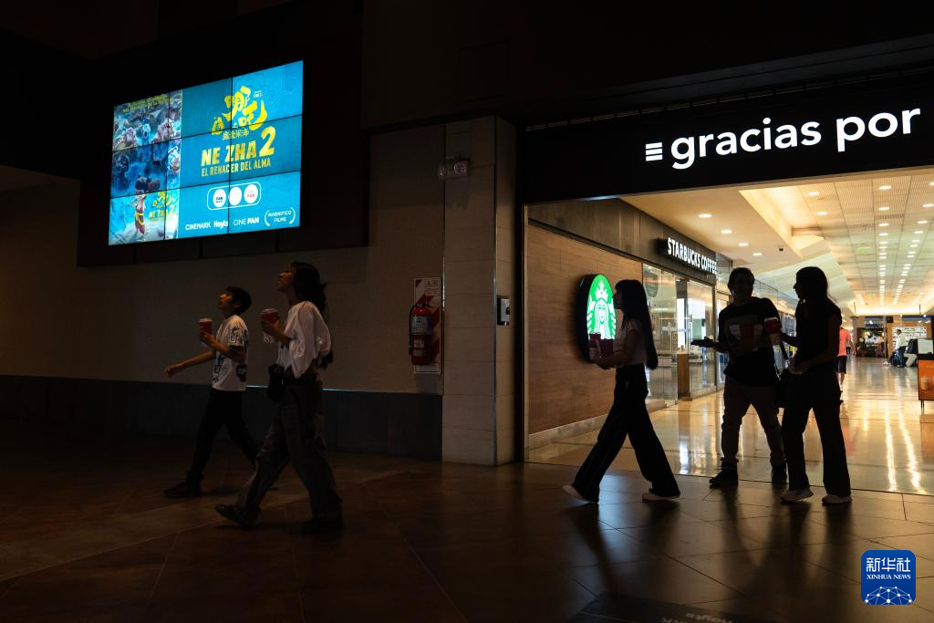 10月2日,人们在阿根廷首都布宜诺斯艾利斯的影院准备走进《哪吒2》放映厅。