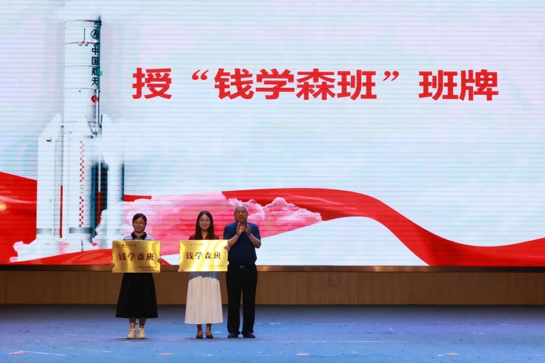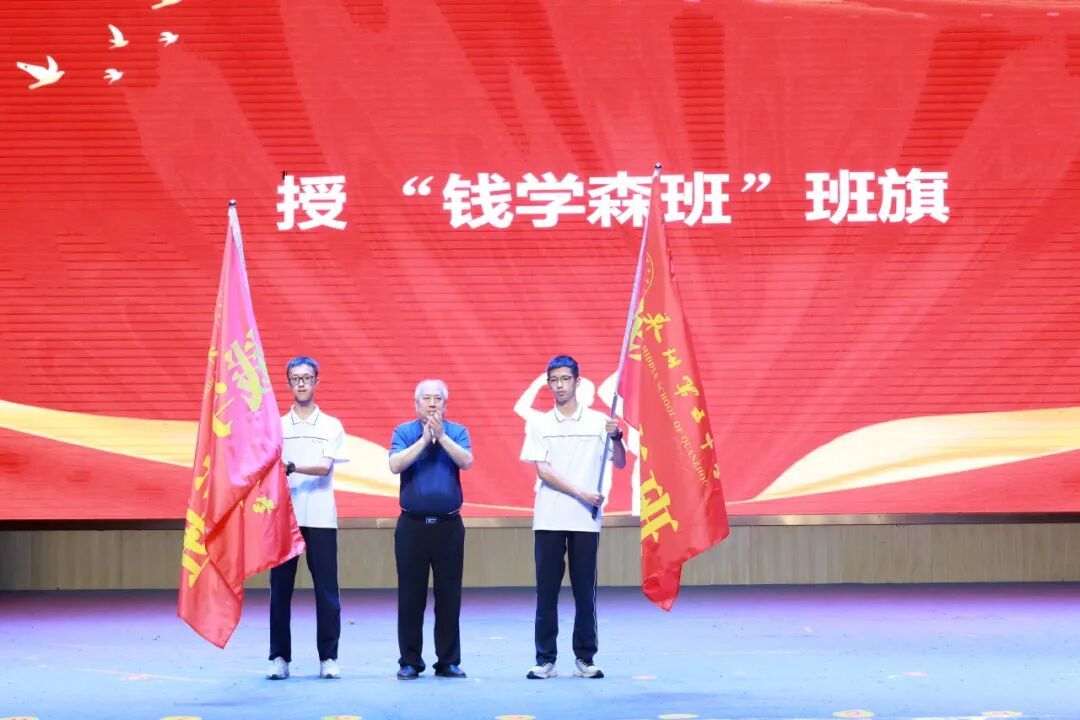 我校在大礼堂举行了庄重的第二届 “钱学森班”授旗仪式。钱永刚教授亲自向我校授予班旗和班牌,标志着我校在传承钱学森精神、培育时代新人的道路上迈出了更为坚实的一步。“钱学森班”是以我国航天事业奠基人、杰出科学家钱学森命名的创新教育平台,旨在弘扬钱学森精神,提升学生科技、人文等各方面素养,培养后备科技人才。泉州五中“钱学森班”选拔品学兼优、身心健康、素质全面、科学研究兴趣浓厚、具备创新潜力与良好艺术素养的学生进入班级学习。