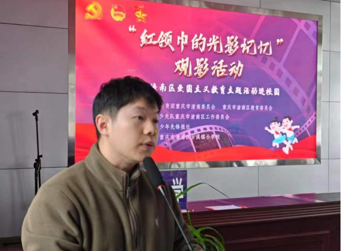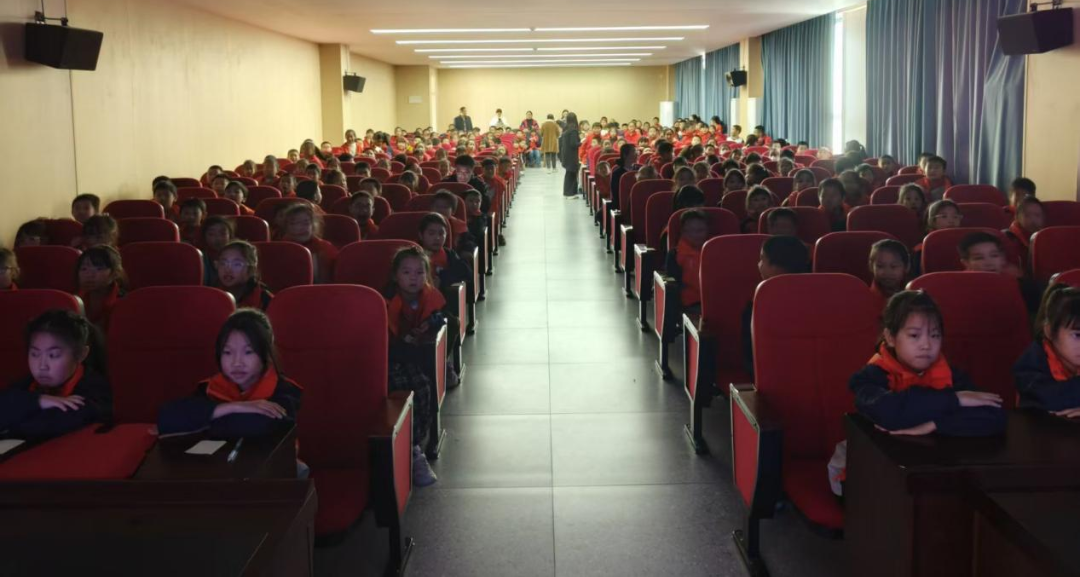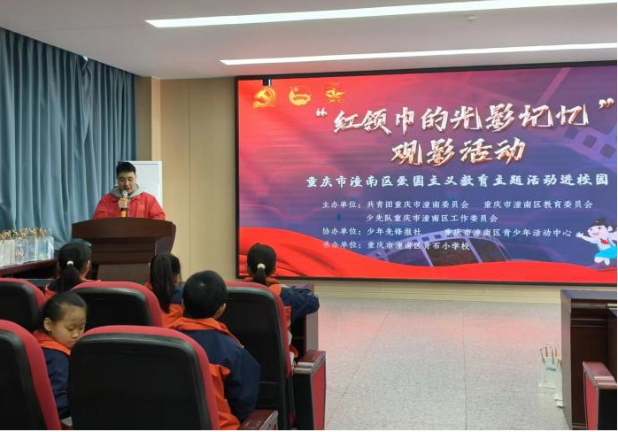 11月13日,潼南区2025年“红领巾的光影记忆”爱国主义教育主题观影活动走进青石小学。大队辅导员贺佳俊致辞,感谢各单位对本校少先队员成长的支持与厚爱,并面向少先队员提出一个问题:“我们应该如何继承先烈的精神意志?”让孩子们带着问题走进电影。